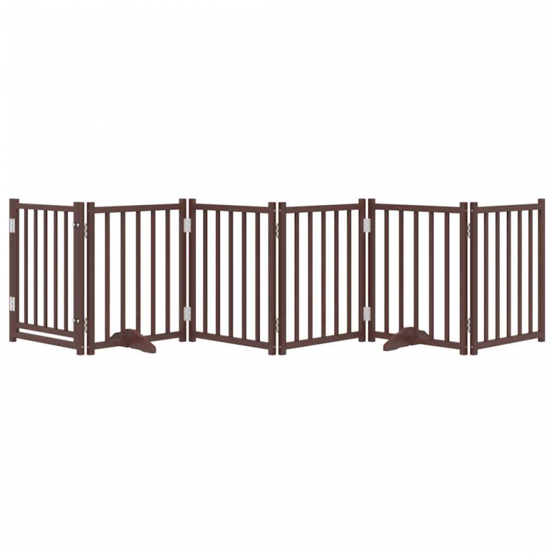6-tlg. Hundetor mit Tür Faltbar Braun Eiche 300 cm Tannenholz