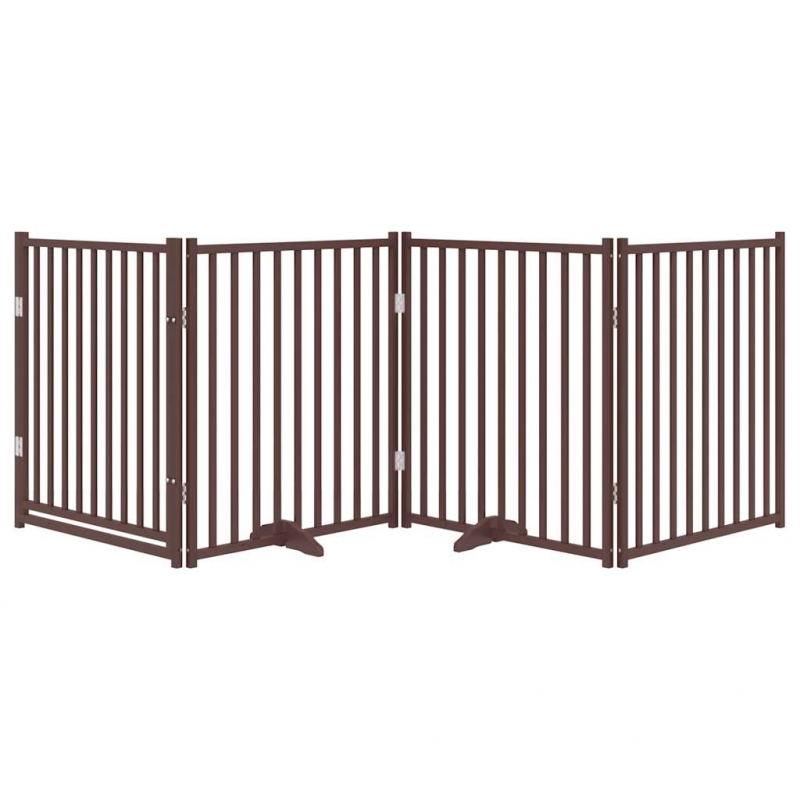 4-tlg. Hundetor mit Tür Faltbar Braun Eiche 320 cm Tannenholz