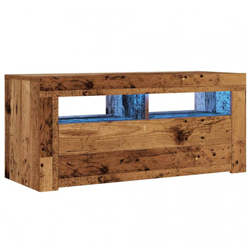 TV-Schrank mit LED-Leuchten Altholz-Optik 90x35x40 cm