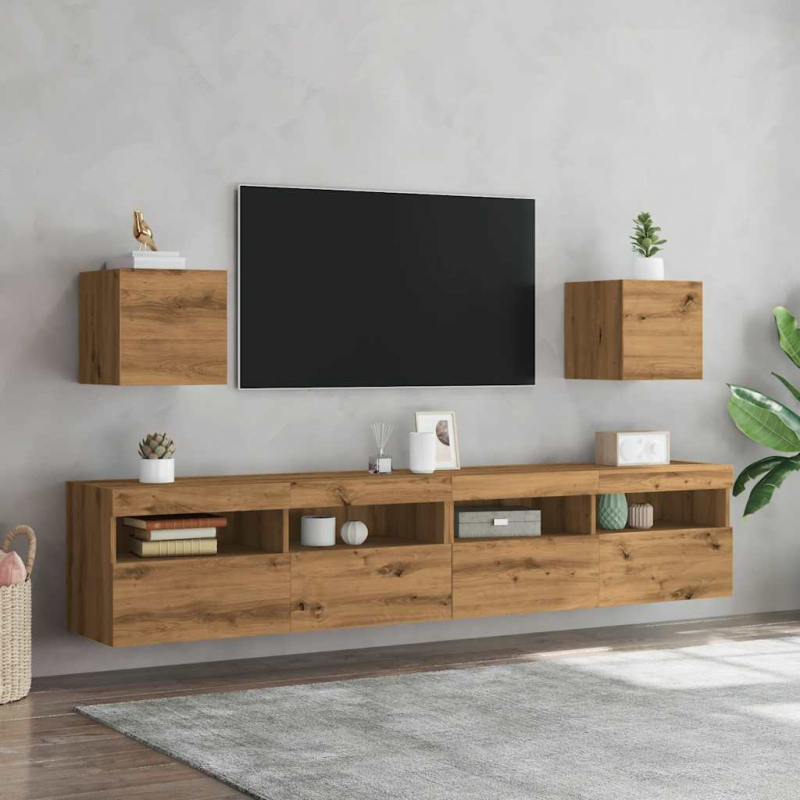 Diese TV-Wandschränke zeichnen sich durch ein elegantes und klassisches Design aus, was sie zu einer dekorativen und praktischen Bereicherung für dein Interieur macht. Starkes Material: Holzwerkstoff ist ein Material von außergewöhnlicher Qualität mit glatter Oberfläche, das sich durch Festigkeit, Stabilität und Feuchtigkeitsbeständigkeit auszeichnet.Viel Stauraum: Der TV-Schrank verfügt über 2 Fächer, die reichlich Platz bieten, um verschiedene Sachen wie Mediaplayer oder Zeitschriften ordentlich aufzubewahren.Wandmontage: Die TV-Konsole nimmt keine Bodenfläche ein. Du kannst sie einfach an der Wand befestigen.Multifunktional: Die robuste Oberplatte des Medienschranks eignet sich ideal, um Dekoartikel, Topfpflanzen oder Bilderrahmen zur Schau zu stellen. Er kann auch als Nachtschrank, Nachttisch usw. verwendet werden.