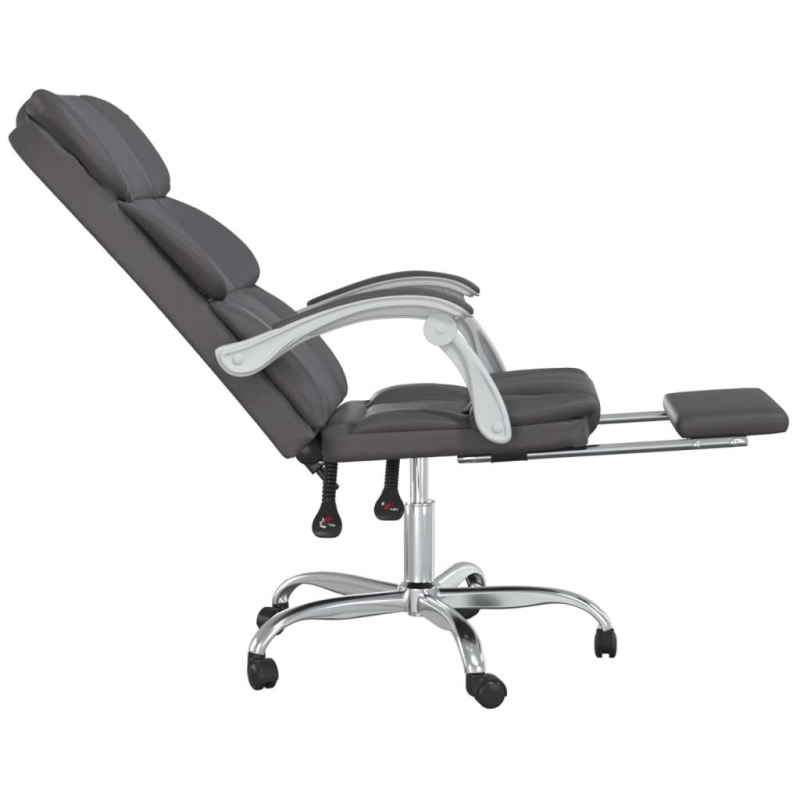 Mit seinem minimalistischen Design vereint dieser trendige Bürostuhl Eleganz und Komfort und ist ein Blickfang in deinem Arbeitsbereich. Langlebiges Kunstleder: Hochwertiges Kunstleder ist ein äußerst langlebiges Material. Es ist schmutzabweisend und lässt sich mit einem feuchten Tuch einfach reinigen. Durch die glatte Oberfläche weist es die Schönheit von Echtleder und einen luxuriösen Look auf.Verstellbare Rückenlehne und Höhe: Der Sessel ist mit Liegefunktion ausgestattet, sodass du Rückenlehne und Fußstütze je nach Belieben einstellen kannst. Verwende den Hebel, um die Sitzhöhe nach Bedarf zu verstellen.Praktisches Design: Der Stuhl lässt sich auch um 360 Grad drehen, um eine größere Bewegungsfreiheit zu ermöglichen. Darüber hinaus lässt sich der Stuhl dank Rollen bequem umher verschieben.Robustes und stabiles Gestell: Die Gestelle aus Metall und Sperrholz sorgen für Robustheit und Stabilität. Hinweis:Jedes Produkt wird mit einer Montageanleitung in der Verpackung für eine einfache Montage geliefert.