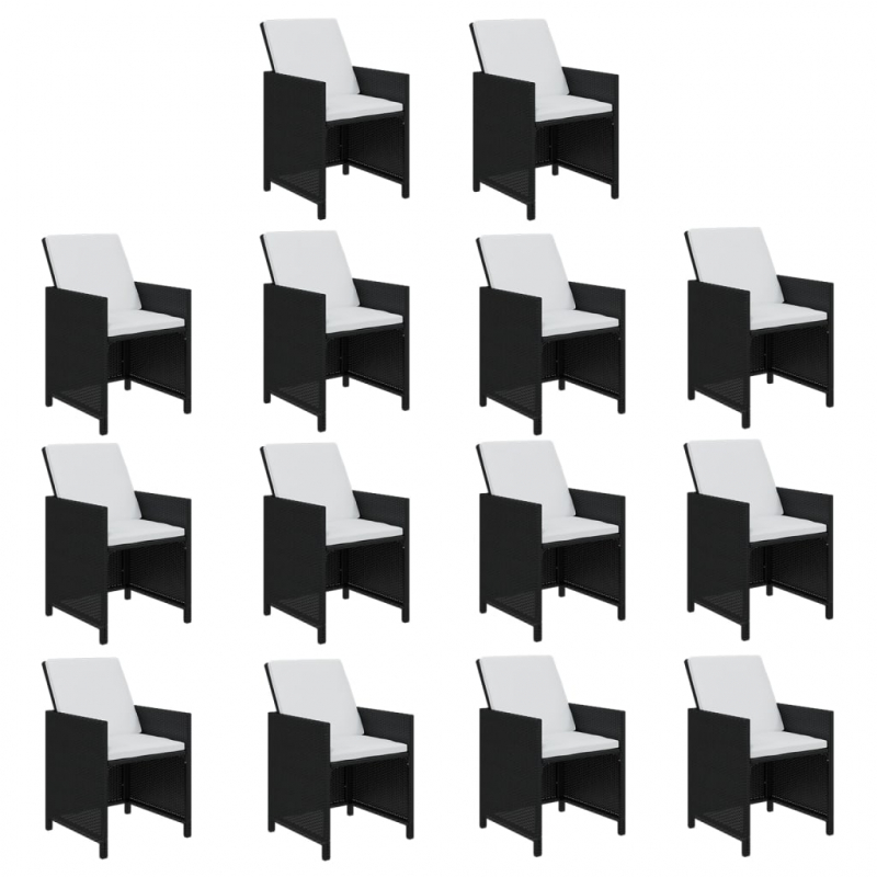 15-tlg. Garten-Essgruppe mit Kissen Poly Rattan Schwarz