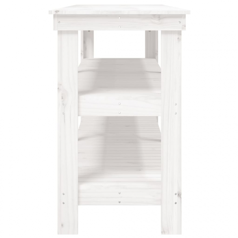 Diese Werkbank aus Holz ist eine praktische Bereicherung für deinen Wohnbereich. Massives Kiefernholz: Massives Kiefernholz ist ein wunderschönes Naturmaterial. Kiefernholz weist eine gerade Maserung auf und die Aststellen verleihen dem Material seine charakteristische, rustikale Optik.Viel Stauraum: Dieser Arbeitstisch mit Ablagen bietet viel Stauraum, um deine Gegenstände übersichtlich und griffbereit aufzubewahren.Robust: Der Holzrahmen sorgt für Robustheit und Stabilität. Achtung:Um das Umkippen zu verhindern, muss dieses Produkt mit der mitgelieferten Wandhalterung gesichert werden.Hinweis:Jedes Produkt wird mit einer Montageanleitung in der Verpackung für einen einfachen Zusammenbau geliefert.