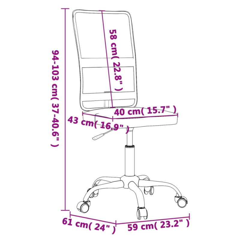Genieße eine komfortable Sitzposition auf diesem Bürostuhl und verbessere den Komfort beim Arbeiten! Atmungsaktives Mesh: Das Netz ist ein Material, das aus verbundenem Garn hergestellt wird. Dank seiner offenen Struktur ist der Mesh-Stoff atmungsaktiv. Robustes und stabiles Gestell: Das Gestell aus Metall und Sperrholz verleiht dem Schreibtischstuhl Robustheit und Stabilität. Höhenverstellbar: Verwende den Hebel, um die Sitzhöhe nach Belieben einzustellen. Praktisches Design: Der Stuhl kann um 360 Grad gedreht werden, um eine größere Bewegungsfreiheit zu ermöglichen. Darüber hinaus lässt sich der Stuhl dank Rollen bequem umher verschieben.