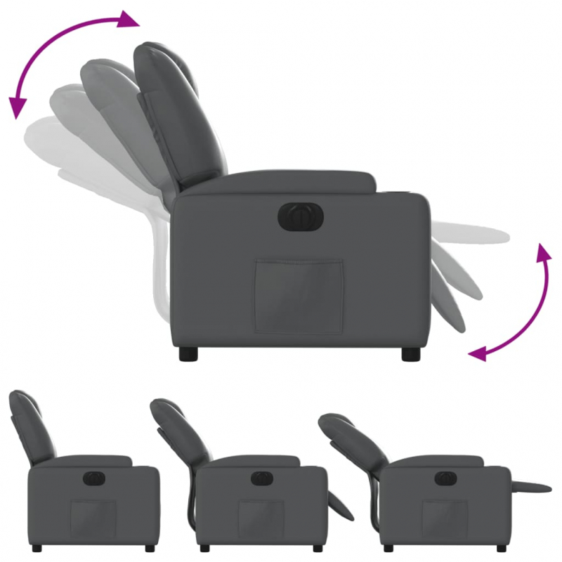 Lehne dich zurück und entspanne dich in diesem äußerst bequemen Fernsehsessel! Elektrische Liegefunktion: Dieser Relaxsessel ist mit einem Elektromotor ausgestattet, der Fußstütze und Rückenlehne durch einfaches Drücken des seitlichen Knopfes automatisch in jede gewünschte Position bringt. Diese Funktion ermöglicht eine maximale Neigung von 135 Grad. Darüber hinaus lässt sich die Rückenlehne auf Knopfdruck automatisch in die ursprünglichen Position zurückbringen.Bequemes Sitzerlebnis: Die dick gepolsterte Sitzfläche, die Rückenlehne und die breiten, mit Kunstleder bezogenen Armlehnen sorgen für ein behagliches und angenehmes Sitzgefühl. Kunstleder ist ein äußerst langlebiges Material. Es ist schmutzabweisend und lässt sich mit einem feuchten Tuch einfach reinigen. Durch die glatte Oberfläche weist es die luxuriöse Schönheit von Echtleder auf.Praktische Getränkehalter und Seitentasche: Dieser Sessel verfügt über zwei praktische Becherhalter und eine Seitentasche, in der du wichtige Sachen griffbereit aufbewahren kannst.Solider und stabiler Rahmen: Der Rahmen aus Holz und Metall sorgt für eine solide Struktur und hohe Stabilität. Dieser TV-Sessel ist bequem und langlebig.