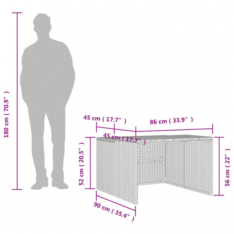 • Material: PE-Rattan, pulverbeschichteter Stahl, PP-Platte