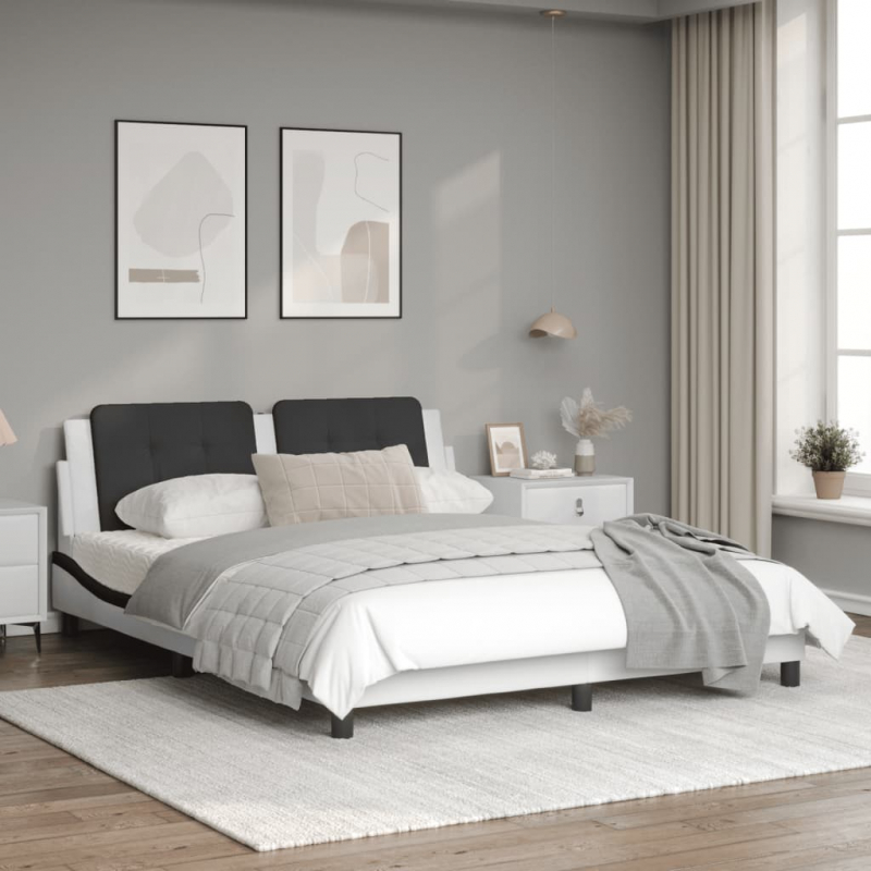 Mit diesem Bettgestell mit Kopfteil genießt du einen besseren, erholsameren Schlaf! Es ist eine angenehme Bereicherung für jedes Schlafzimmer. Langlebiges Kunstleder: Hochwertiges Kunstleder ist ein äußerst langlebiges Material. Es ist schmutzabweisend und lässt sich mit einem feuchten Tuch einfach reinigen. Durch die glatte Oberfläche weist es die Schönheit von Echtleder und einen luxuriösen Look auf.Sperrholzlatten: Die Sperrholzlatten sorgen für eine gute Gewichtsverteilung und auch dafür, dass die Matratze bei jeder Bewegung deines Körpers während des Schlafes an Ort und Stelle bleibt.Ausgezeichnete Unterstützung: Das Kopfteil-Kissen ist mit Schaumstoff gefüllt und fühlt sich daher extra weich und komfortabel an. Es bietet eine ausgezeichnete Rückenunterstützung beim Sitzen im Bett oder Fernsehen.Praktisches Design: Das Kopfteil-Kissen verfügt über einen Reißverschluss und lässt sich dadurch einfach anbringen.Wellenförmiges Seitendesign: Das stilvolle und raffinierte Design in Wellenform verleiht deiner Einrichtung eine moderne und elegante Note und macht das Bettgestell zum Mittelpunkt deines Schlafzimmers. Gut zu wissen:Bei diesem Bett ist keine Matratze im Lieferumfang enthalten. Wir bieten jedoch eine große Auswahl an Matratzen an. Du kannst in unserem Shop nach einer passenden Matratze suchen.