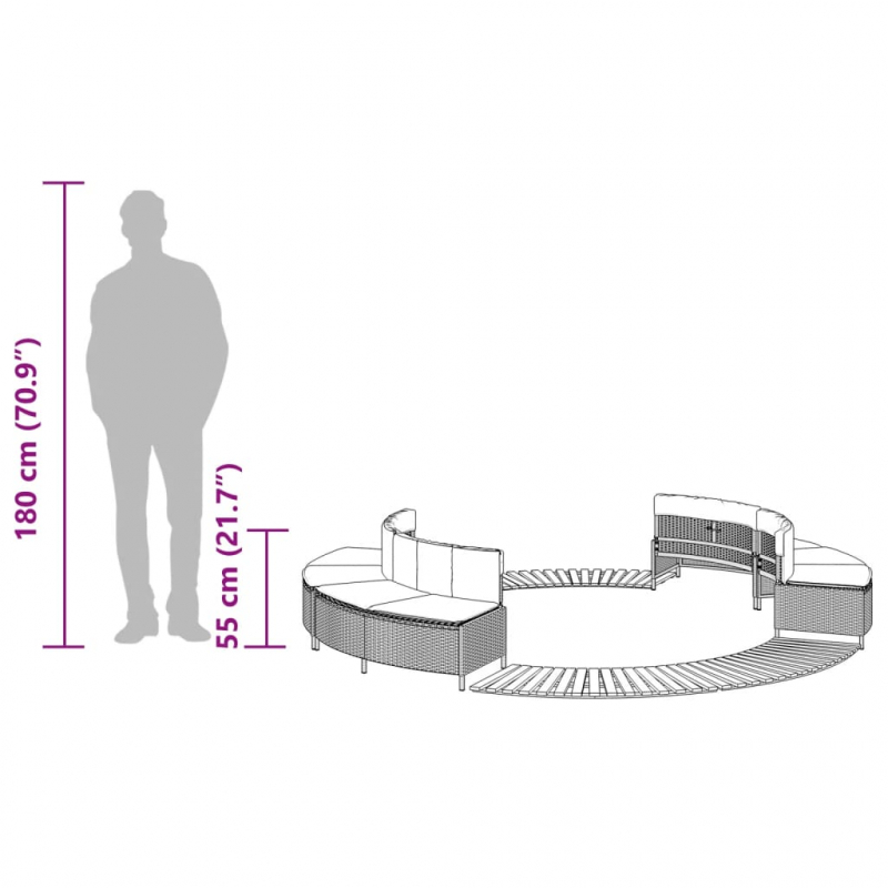 Mit dieser stilvollen Whirlpool-Verkleidung genießt du und deine Gäste mehr Komfort im Whirlpool. Langlebiges Material: PE-Rattan, auch als Poly Rattan bekannt, ist ein robustes, pflegeleichtes synthetisches Material, das die Optik von natürlichem Rattan aufweist. Es kennzeichnet sich durch ein geringes Eigengewicht und lässt sich einfach reinigen. Aufgrund seiner Haltbarkeit und Witterungsbeständigkeit wird es häufig bei der Herstellung von Gartenmöbeln verwendet.Abnehmbarer und waschbarer Bezug: Die Sitzkissen verfügen über abnehmbare Bezüge, die sich ganz einfach waschen und reinigen lassen. Dank der Klappen an der Rückseite können die Rückenkissen ganz einfach an der Rückenlehne befestigt werden.Stabile und sichere Stufe: Die Stufe ist aus massivem Akazienholz gefertigt und bietet eine stabile, sichere und robuste Trittfläche.Latten-Design: Durch das Latten-Design ermöglicht die Whirlpool-Stufe aus Holz das Abfließen des Wassers und verleiht deinem Whirlpool einen Hauch Natürlichkeit.Modulares Design: Dank des modularen Designs lassen sich diese Gartenmöbel völlig flexibel und einfach umstellen, um deinen Außenbereich ganz individuell zu gestalten. Gut zu wissen:Wir empfehlen dir, deine Gartenmöbel mit einer wasserdichten Hülle zu schützen, um lange Zeit eine ansprechende Optik aufzuweisen.