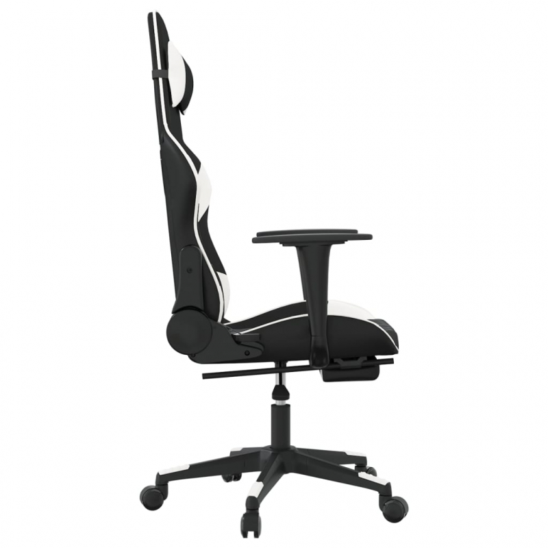 Genieße eine komfortable Sitzposition beim Spielen auf diesem einzigartigen Gaming-Stuhl und verbessere dein Spielerlebnis! Langlebiges Kunstleder: Hochwertiges Kunstleder ist ein äußerst langlebiges Material. Es ist schmutzabweisend und lässt sich mit einem feuchten Tuch einfach reinigen. Durch die glatte Oberfläche weist es die Schönheit von Echtleder und einen luxuriösen Look auf.Massagefunktion: Der Massagepunkt im Taillenbereich bekämpft Müdigkeit effektiv und sorgt für mehr Entspannung während der Arbeit.Verstellbare Rückenlehne und Höhe: Der Sessel ist mit Liegefunktion ausgestattet, sodass du Rückenlehne und Fußstütze je nach Belieben einstellen kannst. Verwende den Hebel, um die Sitzhöhe nach Bedarf zu verstellen.Praktisches Design: Der Stuhl lässt sich auch um 360 Grad drehen, um eine größere Bewegungsfreiheit zu ermöglichen. Darüber hinaus lässt sich der Stuhl dank Rollen bequem umher verschieben.Robustes und stabiles Gestell: Die Gestelle aus Metall und Sperrholz sorgen für Robustheit und Stabilität. Hinweis:Jedes Produkt wird mit einer Montageanleitung in der Verpackung für eine einfache Montage geliefert.Das Produkt verfügt über einen USB-Anschluss, aber die zertifizierte 5-V-USB-Stromquelle ist nicht im Lieferumfang enthalten.
