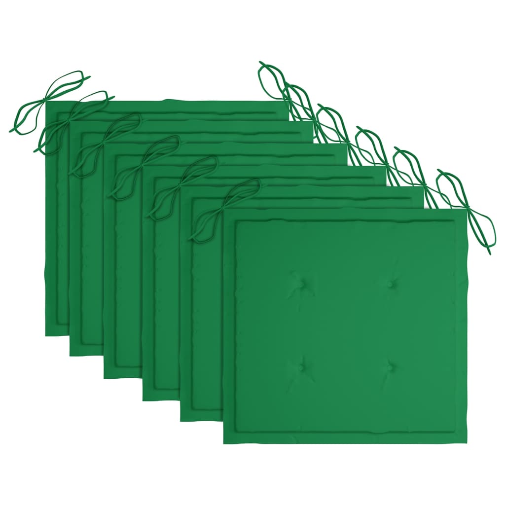 Gartenstühle 6 Stk. mit Grünen Kissen Massivholz Teak