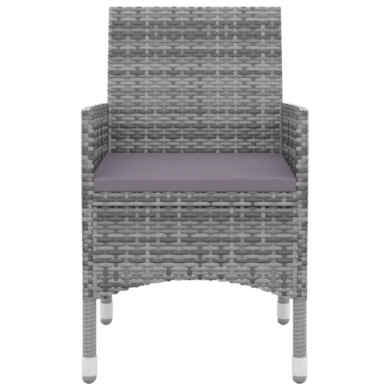 Diese stilvolle Garten-Essgarnitur bietet Ihnen eine gemütliche und komfortable Zeit mit Ihrer Familie und Freunden. Der pulverbeschichtete Stahlrahmen macht den Tisch und die Stühle robust und langlebig. Die Stühle aus wetterfestem und wasserdichtem PE-Rattan sind leicht zu reinigen, strapazierfähig und für den täglichen Gebrauch geeignet. Die glatte Glastischplatte ist ideal zum Abstellen von Getränken, Speisen oder Dekorationsartikeln. Außerdem sorgt das dick gepolsterte Sitzkissen für zusätzlichen Sitzkomfort auf den Stühlen. Hinweis: Um die Lebensdauer Ihrer Gartenmöbel zu verlängern, empfehlen wir Ihnen, diese regelmäßig zu reinigen und im Freien vor Niederschlägen oder starken Sonnenstrahlen zu schützen.Reinigung: Verwenden Sie eine milde Seifenlösung.Lagerung: Wenn möglich, an einem kühlen, trockenen Ort im Innenbereich lagern. Wenn das Produkt im Freien gelagert wird, schützen Sie es mit einer wasserdichten Abdeckung. Wischen und trocknen Sie das überschüssige Wasser oder den Schnee nach Regen oder Schneefall von ebenen Flächen. Sorgen Sie für eine ausreichende Luftzirkulation, um feuchtigkeitsbedingte Schäden zu vermeiden.