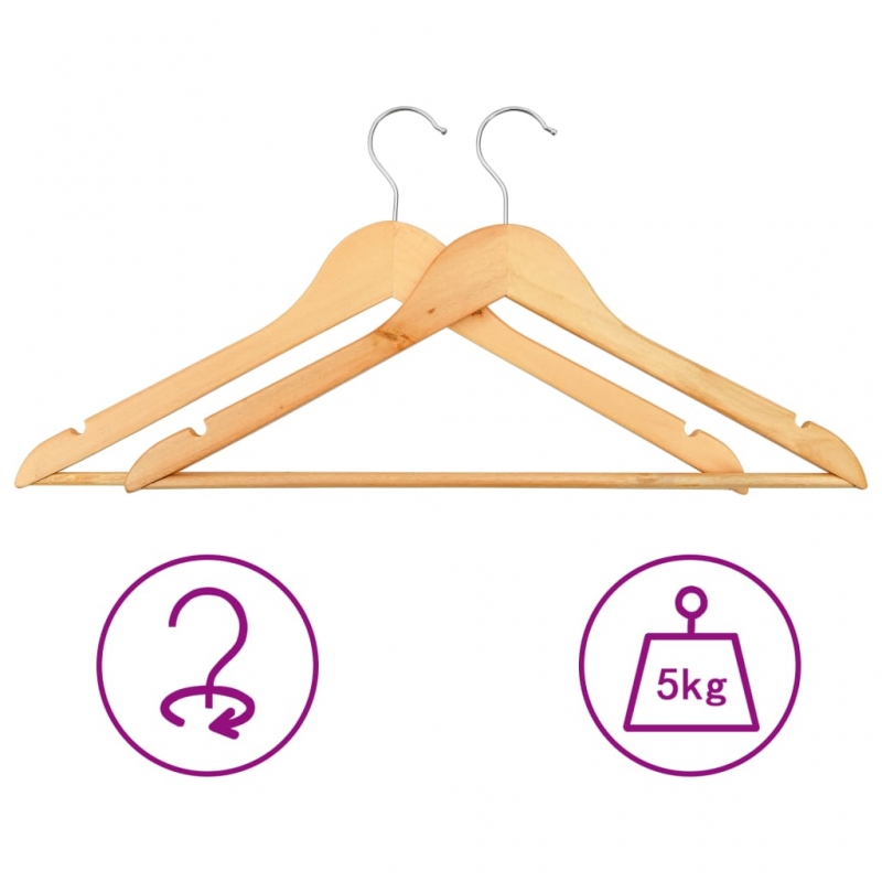 Dieser Holz-Kleiderbügelsatz besteht aus Hartholz und Metall und hält ihn langlebig und robust genug, um dem Gewicht von schweren Stoffen standzuhalten. Der um 360 Grad drehbare Haken bietet Flexibilität, um Ihre Kleidung an verschiedenen Orten zu organisieren. Außerdem verhindern 2 Kerben auf beiden Seiten, dass die Kleidung oder das Kleidungszubehör abrutscht. Darüber hinaus vermeidet die zylindrische Designleiste Falten und bietet weitere Aufhängeoptionen für Hosen, Bettlaken, Decken usw.