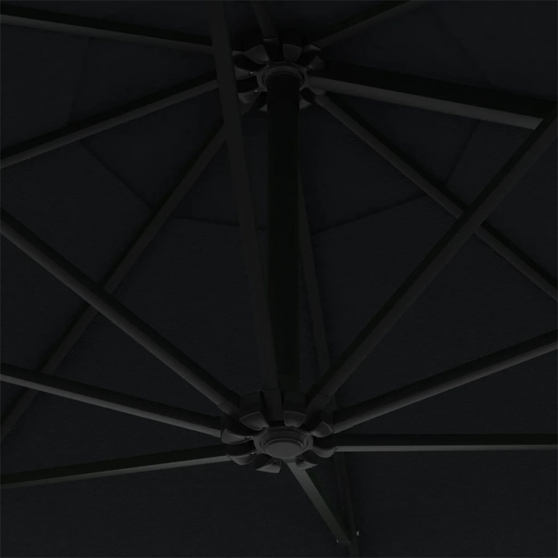 Dieser elegante Sonnenschirm für die Wandmontage schützt dich, indem er den Großteil der UV-Strahlen abschirmt. Aus UV-beständigem und verblassfestem Polyester gefertigt, bietet dieser Sonnenschirm optimalen Schutz vor schädlichen Sonnenstrahlen und ist leicht zu reinigen. Das exklusive Design ermöglicht es Ihnen, den Sonnenschirm zu kippen, damit Sie sich vor der Sonne am Horizont schützen können. Der starke Metallmast und die 8 robusten Schirmrippen verleihen dem Wand-Sonnenschirm Stabilität und Langlebigkeit. Unser Gartenschirm lässt sich zudem dank des Kurbelmechanismus einfach öffnen und schließen. Die mitgelieferten 28 LED-Leuchten schaffen nachts eine gemütliche und romantische Atmosphäre. Bitte beachten: Wir empfehlen, den Schirmbezug mit einem Imprägnierspray zu behandeln, wenn es starken Regenfällen ausgesetzt wird. Die Höhe dieses Balkonschirms hängt von der Höhe ab, in der er an der Wand befestigt wird.