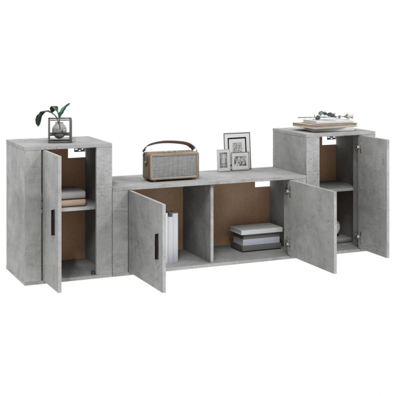 3-tlg. TV-Schrank-Set Betongrau Holzwerkstoff