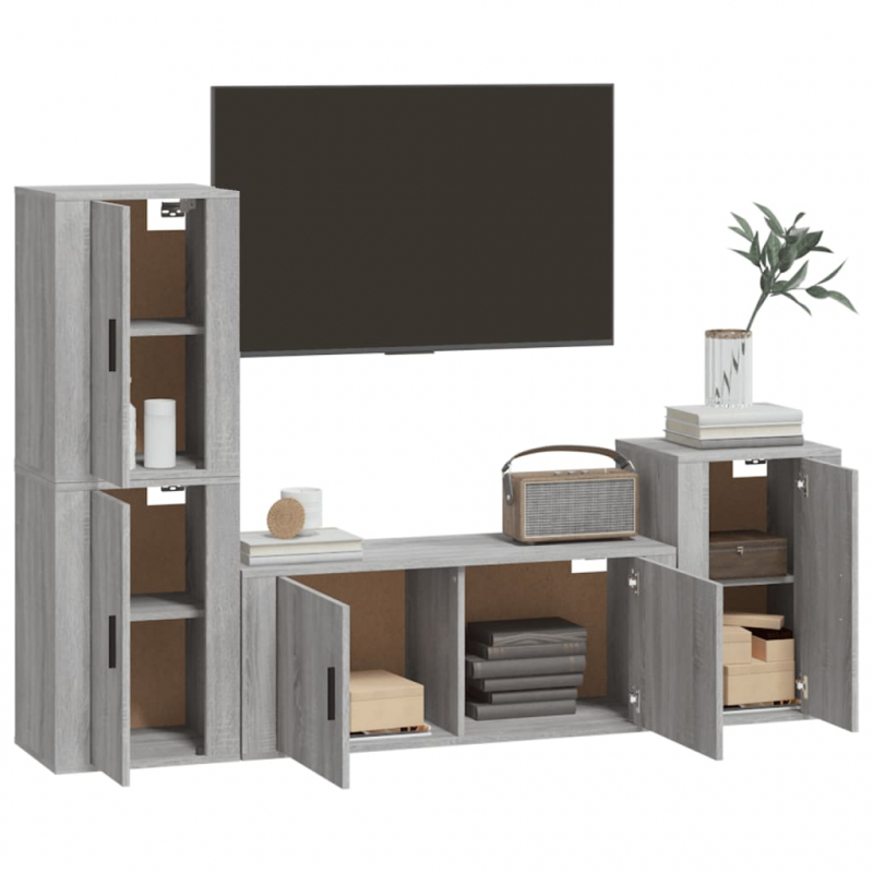 4-tlg. TV-Schrank-Set Grau Sonoma Holzwerkstoff