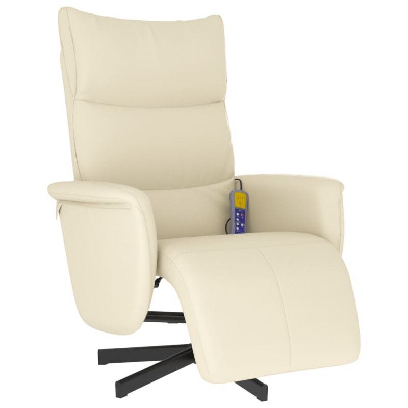 Lehne dich zurück und entspanne dich in diesem äußerst bequemen Massagesessel! Vibrationsfunktion: Dank der 6 Massagepunkte genießt du eine gezielte Massage. Zudem lassen sich verschiedene Massageprogramme über die mitgelieferte Handsteuerung auswählen. Die Massagefunktion wird über den USB-Anschluss betrieben, der eine zertifizierte 5-V-USB-Stromquelle erfordert (nicht im Lieferumfang enthalten).Verstellbare Rückenlehne und Fußstütze: Dieser Massagesessel ist mit Liegefunktion ausgestattet, sodass du Rückenlehne und Fußstütze nach Belieben einstellen kannst. Die Rückenlehne kann von 105 bis 125 Grad geneigt werden.Um 360 Grad drehbar: Der Massagesessel lässt sich um 360 Grad schwenken, was ihm Flexibilität verleiht.Bequemes Sitzerlebnis: Der dick gepolsterte Sitz, die Rückenlehne und die breiten, mit Kunstleder bezogenen Armlehnen sorgen für ein behagliches und angenehmes Sitzgefühl. Künstliches Leder ist ein äußerst langlebiges Material. Es ist schmutzabweisend und lässt sich mit einem feuchten Tuch einfach reinigen. Durch die glatte Oberfläche weist es die luxuriöse Schönheit von Echtleder auf.Solider und stabiler Rahmen: Der Rahmen aus Sperrholz und Metall sorgt für Robustheit und hohe Stabilität. Dieser Massagesessel ist bequem und langlebig. Gut zu wissen:Um Platz zu sparen, werden einige Teile oder Kissen in die Möbel gepackt – überprüfen Sie die Reißverschlussfächer oder unter dem Sitzbezug auf versteckte Komponenten.