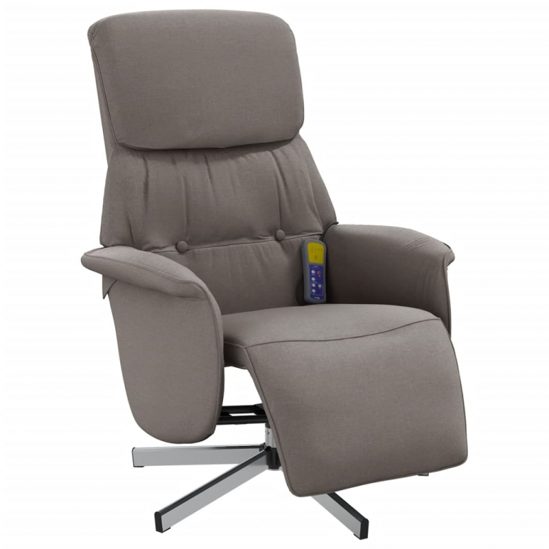 Lehne dich zurück und entspanne dich in diesem äußerst bequemen Massagesessel! Vibrationsfunktion: Dank der 6 Massagepunkte genießt du eine gezielte Massage. Zudem lassen sich verschiedene Massageprogramme über die mitgelieferte Handsteuerung auswählen. Die Massagefunktion wird über den USB-Anschluss betrieben, der eine zertifizierte 5-V-USB-Stromquelle erfordert (nicht im Lieferumfang enthalten).Verstellbare Rückenlehne und Fußstütze: Dieser Massagesessel ist mit Liegefunktion ausgestattet, sodass du Rückenlehne und Fußstütze nach Belieben einstellen kannst. Die Rückenlehne kann von 105 bis 125 Grad geneigt werden.Um 360 Grad drehbar: Der Massagesessel lässt sich um 360 Grad schwenken, was ihm Flexibilität verleiht.Bequemes Sitzerlebnis: Die dick gepolsterte Sitzfläche, die Rückenlehne und die breiten Armlehnen sorgen für ein behagliches und wohliges Sitzgefühl. Der Bezug aus Stoff weist eine schlichte und saubere Optik auf und ist auch atmungsaktiv und langlebig.Solider und stabiler Rahmen: Der Rahmen aus Sperrholz und Metall sorgt für Robustheit und hohe Stabilität. Dieser Massagesessel ist bequem und langlebig. Gut zu wissen:Um Platz zu sparen, werden einige Teile oder Kissen in die Möbel gepackt – überprüfen Sie die Reißverschlussfächer oder unter dem Sitzbezug auf versteckte Komponenten.