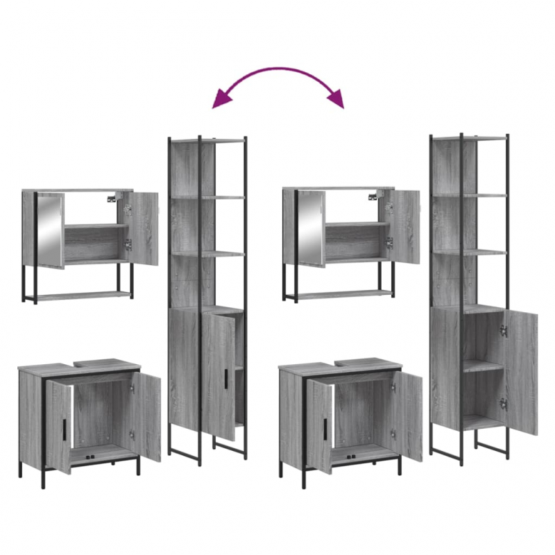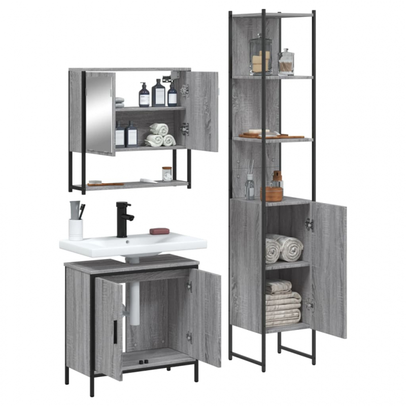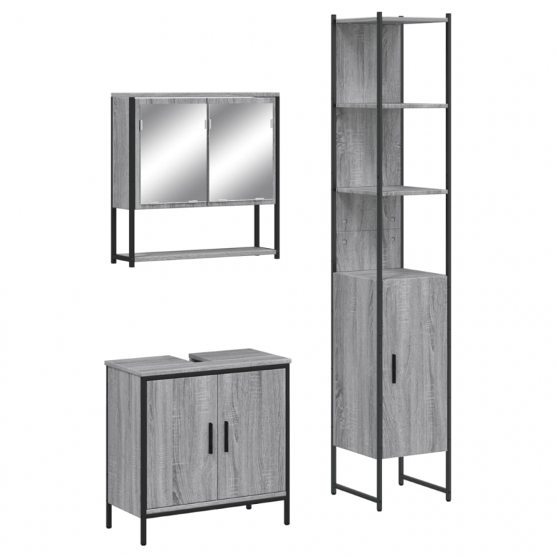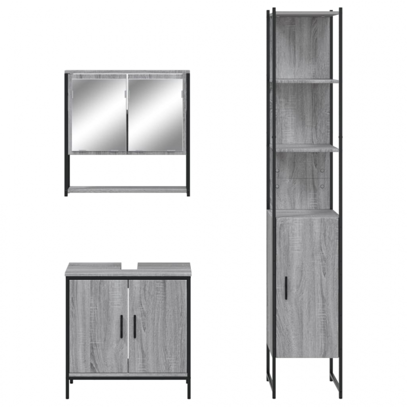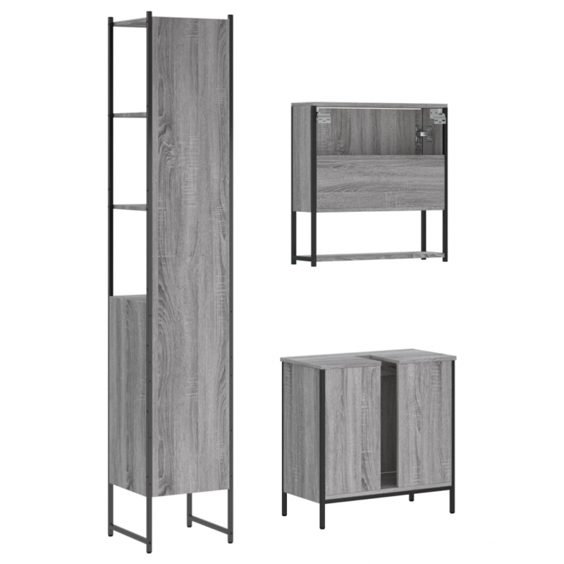 3-tlg. Badmöbel-Set Grau Sonoma Holzwerkstoff