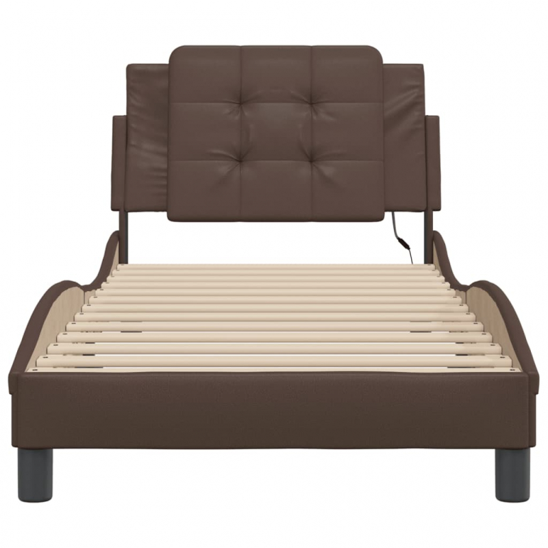 Dieses Bettgestell mit LED-Leuchten sorgt für eine erholsame Nachtruhe! Es stellt eine einladende Ergänzung zu jedem Schlafzimmer dar. Langlebiges Kunstleder: Hochwertiges Kunstleder ist ein äußerst langlebiges Material. Es ist schmutzabweisend und lässt sich mit einem feuchten Tuch einfach reinigen. Durch die glatte Oberfläche weist es die Schönheit von Echtleder und einen luxuriösen Look auf.Sperrholzlatten: Die Sperrholzlatten sorgen für eine gute Gewichtsverteilung und auch dafür, dass die Matratze bei jeder Bewegung deines Körpers während des Schlafes an Ort und Stelle bleibt.Hervorragende Unterstützung: Das Bett-Kopfteil bietet dir eine hervorragende Unterstützung, während du im Bett sitzt, um zu lesen oder fernzusehen.Bunter LED-Streifen: Die farbenfrohen LED-Leuchten bringen das Schlafzimmer zum Leuchten! Die Klettverschlüsse auf der Rückseite des Kopfteils können zur Befestigung der LED-Leuchten verwendet werden.Wellenförmiges Seitendesign: Das stilvolle und raffinierte Design in Wellenform verleiht deiner Einrichtung eine moderne und elegante Note und macht das Bettgestell zum Mittelpunkt deines Schlafzimmers. Gut zu wissen:Bei diesem Bett ist keine Matratze im Lieferumfang enthalten. Wir bieten jedoch eine große Auswahl an Matratzen an. Du kannst in unserem Shop nach einer passenden Matratze suchen.Das Produkt verfügt über einen USB-Anschluss, für den eine zertifizierte 5V-USB-Stromquelle erforderlich ist (nicht im Lieferumfang enthalten).