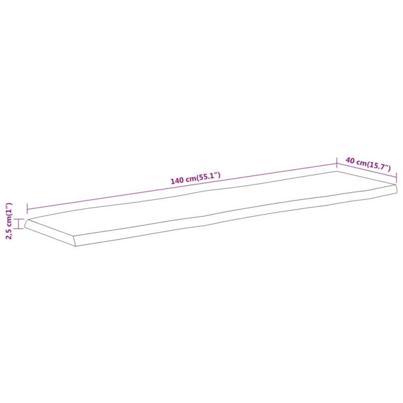 Tischplatte 140x40x2,5cm Rechteckig Massivholz Akazie Baumkante