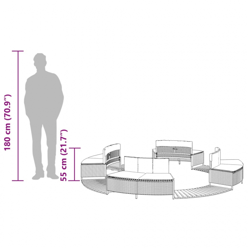 Mit dieser stilvollen Whirlpool-Verkleidung genießt du und deine Gäste mehr Komfort im Whirlpool. Langlebiges Material: PE-Rattan, auch als Poly Rattan bekannt, ist ein robustes, pflegeleichtes synthetisches Material, das die Optik von natürlichem Rattan aufweist. Es kennzeichnet sich durch ein geringes Eigengewicht und lässt sich einfach reinigen. Aufgrund seiner Haltbarkeit und Witterungsbeständigkeit wird es häufig bei der Herstellung von Gartenmöbeln verwendet.Abnehmbarer und waschbarer Bezug: Die Sitzkissen verfügen über abnehmbare Bezüge, die sich ganz einfach waschen und reinigen lassen. Dank der Klappen an der Rückseite können die Rückenkissen ganz einfach an der Rückenlehne befestigt werden.Stabile und sichere Stufe: Die Stufe ist aus massivem Akazienholz gefertigt und bietet eine stabile, sichere und robuste Trittfläche.Latten-Design: Durch das Latten-Design ermöglicht die Whirlpool-Stufe aus Holz das Abfließen des Wassers und verleiht deinem Whirlpool einen Hauch Natürlichkeit.Modulares Design: Dank des modularen Designs lassen sich diese Gartenmöbel völlig flexibel und einfach umstellen, um deinen Außenbereich ganz individuell zu gestalten. Gut zu wissen:Wir empfehlen dir, deine Gartenmöbel mit einer wasserdichten Hülle zu schützen, um lange Zeit eine ansprechende Optik aufzuweisen.