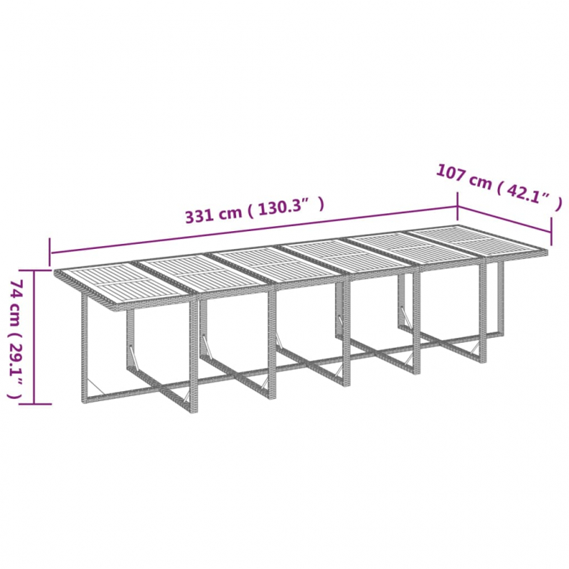 Diese Garten-Essgruppe aus Poly Rattan mit ihrem eleganten und einzigartigen Design ist eine großartige Wahl für Mahlzeiten und Entspannen im Outdoor-Wohnbereich. Praktisches Material: Das witterungsbeständige PE-Rattan ist pflegeleicht und strapazierfähig und sorgt für jahrelangen Dienst.Stabile und starke Struktur: Die Stahlrahmen des Gartentisches und der Gartenstühle sorgen für Robustheit und Stabilität.Flexible Stühle: Du kannst die Rückenlehnen umklappen und die Outdoor-Stühle unter dem Tisch verstauen. So sparst du wertvollen Stauraum, wenn das Set nicht in Gebrauch ist. Dank ihrer Leichtbauweise lassen sich alle Artikel leicht umstellen.Komfortables Erlebnis: Die dicken, weichen, mit Schaumstoff gefüllten Sitz- und Rückenkissen sorgen für zusätzlichen Sitzkomfort. Hinweis:Um die Lebensdauer deiner Gartenmöbel zu verlängern, empfehlen wir dir, sie mit einer wasserdichten Hülle zu schützen.