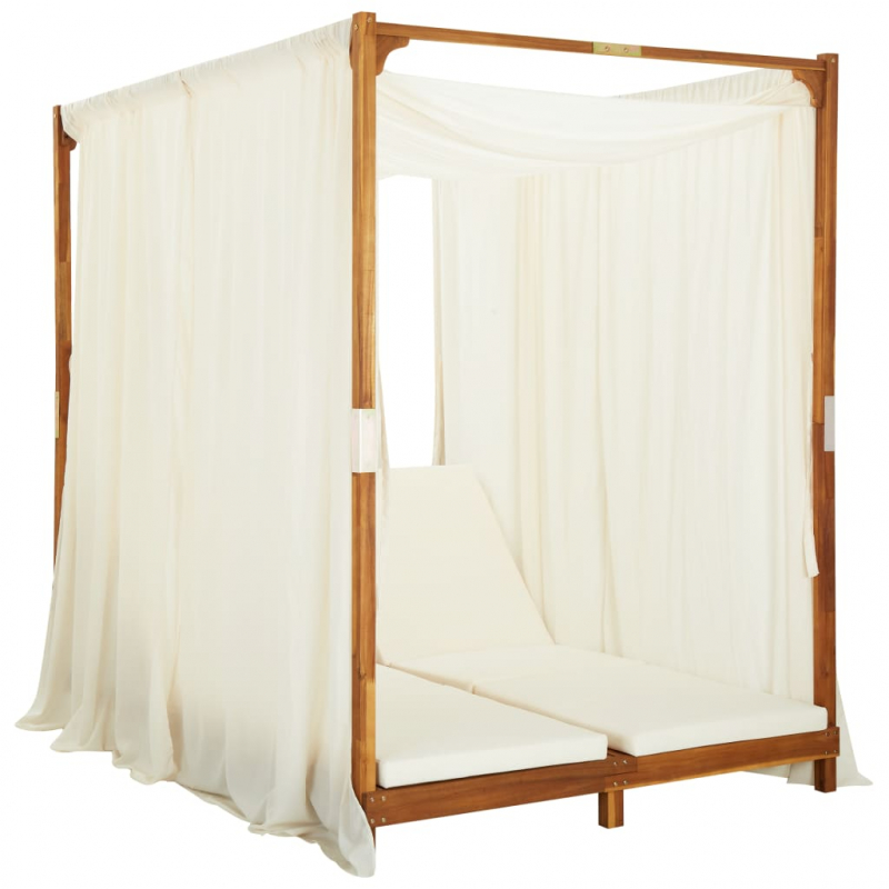 Doppel-Sonnenliege mit Vorhängen und Auflagen Akazie Massivholz