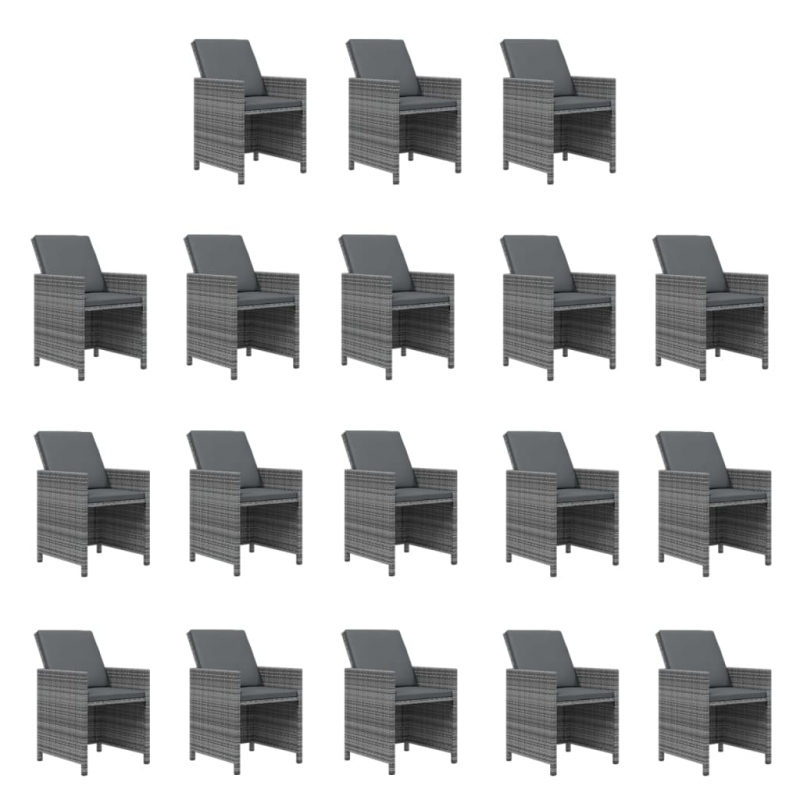 19-tlg. Garten-Essgruppe mit Kissen Poly Rattan Grau