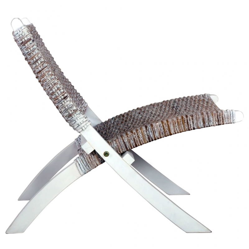 Relaxstuhl Weiß Natur Kubu-Rattan und Massivholz Mahagoni