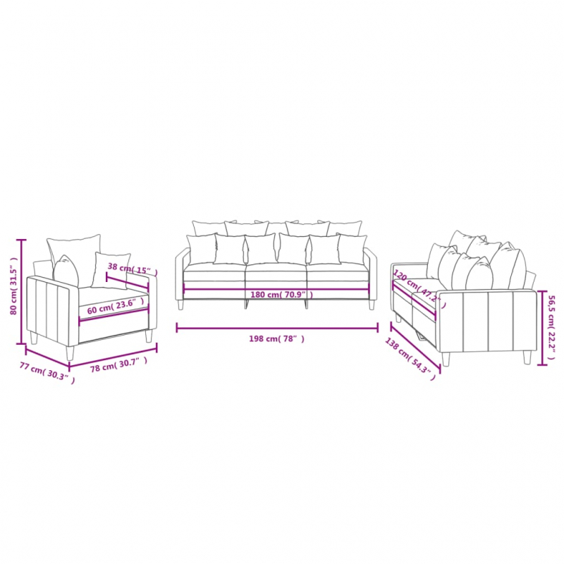 Diese Sofagarnitur bietet einen ausgezeichneten Platz zum Plaudern, Lesen, Fernsehen oder einfach nur zum Entspannen. Sie wird ein echter Blickfang in deinem Zuhause sein. Weicher Samt: Samt ist ein weicher und bequemer Stoff, der sich angenehm auf der Haut anfühlt.Robustes und stabiles Gestell: Das Gestell aus Sperrholz und Metall verleiht der Sofagarnitur Robustheit und Stabilität. Bequemes Sitzerlebnis: Mit dick gepolsterten Sitzflächen, Armlehnen und Rückenkissen versehen, ist das Sofa sehr bequem.