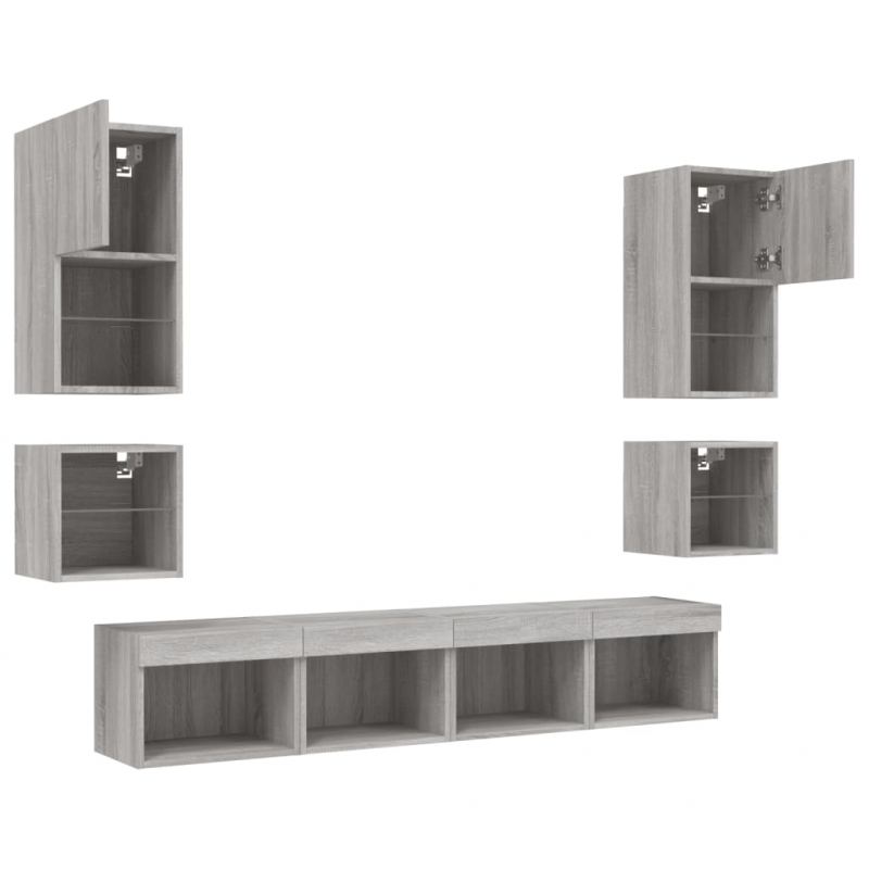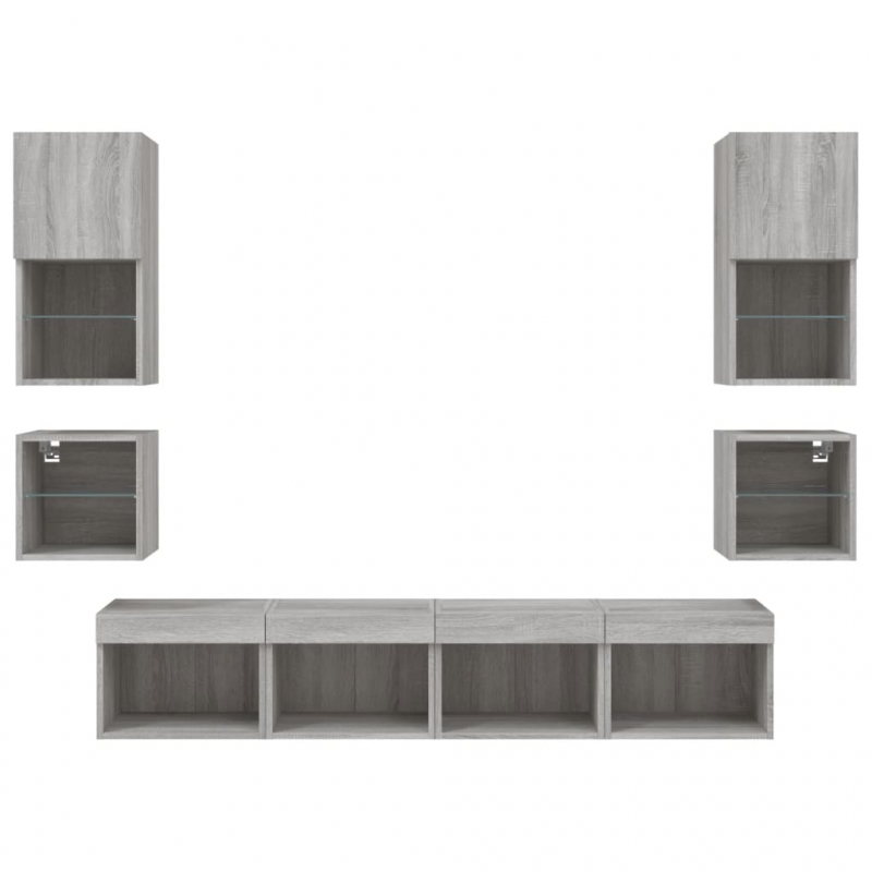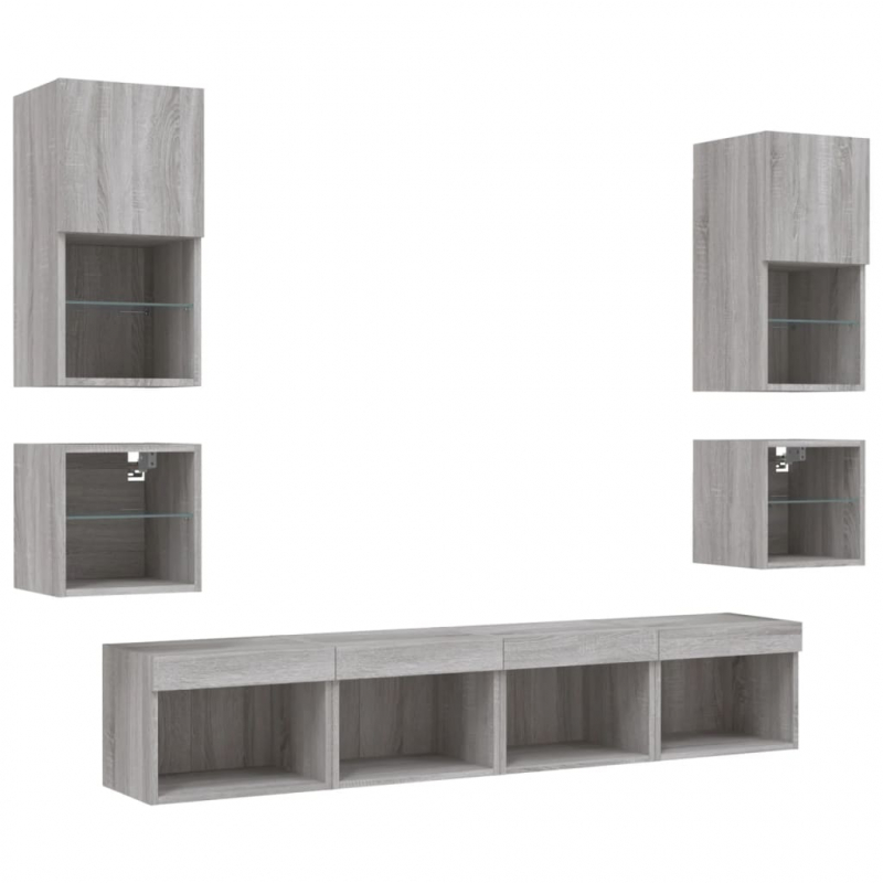 Diese TV-Wandschränke bieten eine perfekte Lösung, um zusätzlichen Stauraum in deinem Wohnraum zu schaffen und für Ordnung zu sorgen. Robustes Material: Holzwerkstoff ist ein Material von außergewöhnlicher Qualität mit glatter Oberfläche, das sich durch Festigkeit, Stabilität und Feuchtigkeitsbeständigkeit auszeichnet.RGB-LED-Leuchten: Die Wohnwand ist mit lebendigen RGB-LED-Leuchten ausgestattet. Mit verschiedenen anpassbaren Menüs kannst du die Farbe der Lichter mühelos wechseln und sie sogar auf automatische Anpassung einstellen. Diese LED-Leuchten unterstreichen nicht nur den modernen Look des TV-Wandschranks, sondern tragen auch zu seiner trendigen Optik bei.Wandmontage: Der TV-Schrank lässt sich an der Wand montieren, um zusätzlichen Stauraum zu schaffen. Auf diese Weise kannst du deine Bodenfläche maximieren und für Ordnung im Raum sorgen.Reichlich Stauraum: Das TV-Wandschrank-Set bietet reichlich Platz, um Bücher, DVDs, Zeitschriften, Medien und andere Alltagsgegenstände übersichtlich und griffbereit zu verstauen.Vielseitiges Design: Du kannst den Schrank als TV-Schrank verwenden oder ihn im Arbeitszimmer an der Wand montieren, um Utensilien oder andere Gegenstände bequem aufzubewahren. Zudem verwandelt er eine leere Wand sofort in ein Design-Element. Gut zu wissen:Schrauben und Dübel für die Innenseite der Wand sind nicht enthalten. Wir empfehlen dir, Schrauben und Dübel zu finden und zu verwenden, die speziell für deine Wände geeignet sind. Wenn du dir nicht sicher bist, kannst du dich an einen Fachmann wenden. Bitte lies und befolge jeden Schritt in der Anleitung.Das Produkt verfügt über einen USB-Anschluss, für den eine zertifizierte 5V-USB-Stromquelle erforderlich ist (nicht im Lieferumfang enthalten).