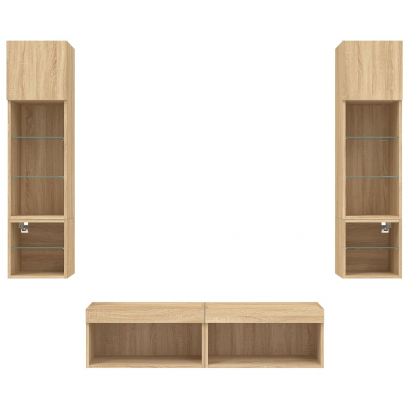 Diese TV-Wandschränke bieten eine perfekte Lösung, um zusätzlichen Stauraum in deinem Wohnraum zu schaffen und für Ordnung zu sorgen. Robustes Material: Holzwerkstoff ist ein Material von außergewöhnlicher Qualität mit glatter Oberfläche, das sich durch Festigkeit, Stabilität und Feuchtigkeitsbeständigkeit auszeichnet.RGB-LED-Leuchten: Die Wohnwand ist mit lebendigen RGB-LED-Leuchten ausgestattet. Mit verschiedenen anpassbaren Menüs kannst du die Farbe der Lichter mühelos wechseln und sie sogar auf automatische Anpassung einstellen. Diese LED-Leuchten unterstreichen nicht nur den modernen Look des TV-Wandschranks, sondern tragen auch zu seiner trendigen Optik bei.Wandmontage: Der TV-Schrank lässt sich an der Wand montieren, um zusätzlichen Stauraum zu schaffen. Auf diese Weise kannst du deine Bodenfläche maximieren und für Ordnung im Raum sorgen.Reichlich Stauraum: Das TV-Wandschrank-Set bietet reichlich Platz, um Bücher, DVDs, Zeitschriften, Medien und andere Alltagsgegenstände übersichtlich und griffbereit zu verstauen.Vielseitiges Design: Du kannst den Schrank als TV-Schrank verwenden oder ihn im Arbeitszimmer an der Wand montieren, um Utensilien oder andere Gegenstände bequem aufzubewahren. Zudem verwandelt er eine leere Wand sofort in ein Design-Element. Gut zu wissen:Schrauben und Dübel für die Innenseite der Wand sind nicht enthalten. Wir empfehlen dir, Schrauben und Dübel zu finden und zu verwenden, die speziell für deine Wände geeignet sind. Wenn du dir nicht sicher bist, kannst du dich an einen Fachmann wenden. Bitte lies und befolge jeden Schritt in der Anleitung.Das Produkt verfügt über einen USB-Anschluss, für den eine zertifizierte 5V-USB-Stromquelle erforderlich ist (nicht im Lieferumfang enthalten).