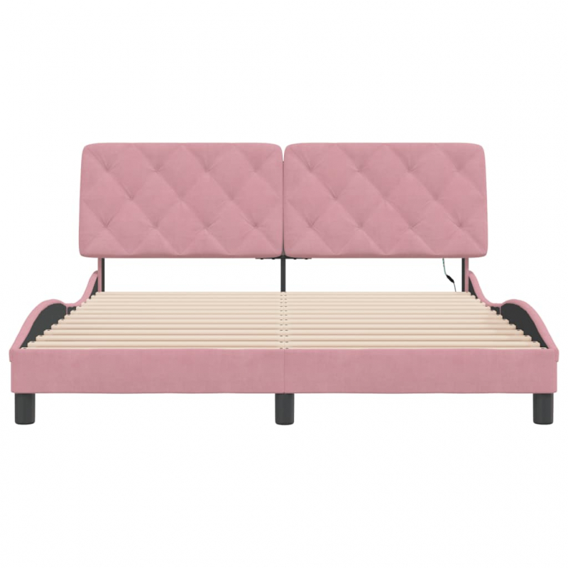 Bettgestell mit LED-Leuchten Rosa 160x200 cm Samt