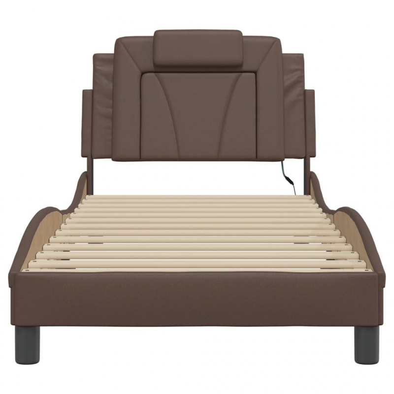 Bettgestell mit LED Braun 80x200 cm Kunstleder