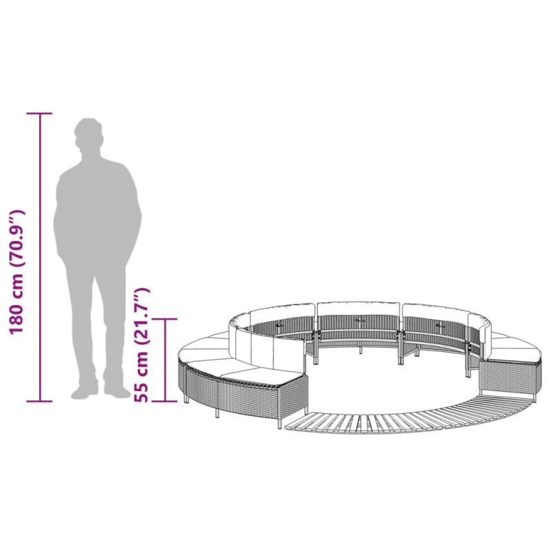 Mit dieser stilvollen Whirlpool-Verkleidung genießt du und deine Gäste mehr Komfort im Whirlpool. Langlebiges Material: PE-Rattan, auch als Poly Rattan bekannt, ist ein robustes, pflegeleichtes synthetisches Material, das die Optik von natürlichem Rattan aufweist. Es kennzeichnet sich durch ein geringes Eigengewicht und lässt sich einfach reinigen. Aufgrund seiner Haltbarkeit und Witterungsbeständigkeit wird es häufig bei der Herstellung von Gartenmöbeln verwendet.Abnehmbarer und waschbarer Bezug: Die Sitzkissen verfügen über abnehmbare Bezüge, die sich ganz einfach waschen und reinigen lassen. Dank der Klappen an der Rückseite können die Rückenkissen ganz einfach an der Rückenlehne befestigt werden.Stabile und sichere Stufe: Die Stufe ist aus massivem Akazienholz gefertigt und bietet eine stabile, sichere und robuste Trittfläche.Latten-Design: Durch das Latten-Design ermöglicht die Whirlpool-Stufe aus Holz das Abfließen des Wassers und verleiht deinem Whirlpool einen Hauch Natürlichkeit.Modulares Design: Dank des modularen Designs lassen sich diese Gartenmöbel völlig flexibel und einfach umstellen, um deinen Außenbereich ganz individuell zu gestalten. Gut zu wissen:Wir empfehlen dir, deine Gartenmöbel mit einer wasserdichten Hülle zu schützen, um lange Zeit eine ansprechende Optik aufzuweisen.