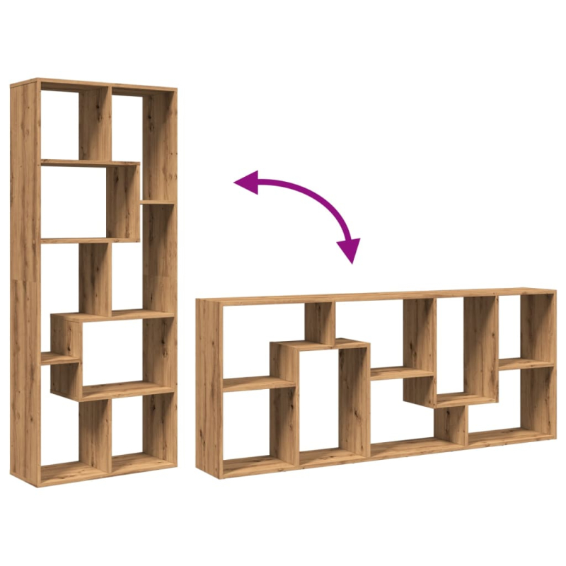 Das moderne Raumteiler-Bücherregal im geometrischen Design bietet viel Stauraum und eignet sich perfekt, um deinen Wohnraum stilvoll und aufgeräumt zu halten! Starkes und langlebiges Material: Holzwerkstoff ist ein langlebiges und robustes Material mit einer glatten Oberfläche, das gegen Feuchtigkeit, Verformung und Rissbildung beständig ist; dadurch ist es eine zuverlässige Wahl für die Herstellung von Möbeln.Reichlich Stauraum: Mit unterschiedlich großen Fächern bietet dieses Bücherregal flexible Aufbewahrungsmöglichkeiten für Gegenstände unterschiedlicher Formen und Größen.Flexible Aufstellungsmöglichkeiten: Das Regal kann sowohl in der Breite als auch in der Höhe auf den Boden gestellt werden und bietet so vielfältige Möglichkeiten der Raumgestaltung.Vielseitig einsetzbar: Das Regal kann auch als Raumteiler verwendet werden und passt problemlos zu jedem Einrichtungsstil. Es findet Platz im Wohnzimmer, um Dekoartikel zur Schau zu stellen, im Büro, um Bücher und Unterlagen zu verstauen, im Schlafzimmer, um Alltagssachen aufzubewahren, oder im Keller, um Haushaltssachen zu lagern.Pflegeleicht: Dank seiner glatten Oberfläche lässt sich das Raumtrenner-Bücherregal einfach mit einem feuchten Tuch reinigen und erfordert wenig Pflege. Achtung:Um ein Umkippen zu vermeiden, sollte dieses Produkt mit der mitgelieferten Wandhalterung gesichert werden. Gut zu wissen:Schrauben und Dübel für die Montage an der Wand sind nicht enthalten. Passendes Montagezubehör muss separat gekauft werden. Wenn du dir bezüglich der Montage nicht sicher bist, wende dich bitte an einen Fachmann. Bitte lies und befolge jeden Schritt in der Anleitung.