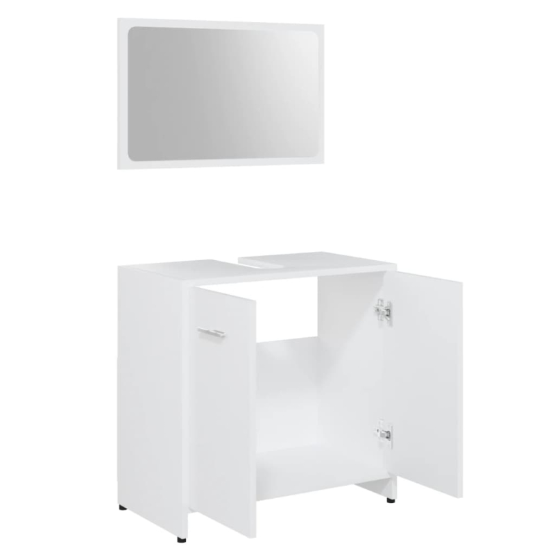 Dieses stilvolle Badmöbel-Set mit 1 Hochschrank, 1 Unterschrank und 1 Spiegel schafft zusätzlichen Stauraum in Ihrem Badezimmer. Es verleiht jedem Bad ein atemberaubendes und gepflegtes Erscheinungsbild. Dieses Set aus hochwertigem Holzwerkstoff gefertigt, ist langlebig und stabil. Der schicke Hochschrank verfügt über 6 Fächer und 2 Türen und bietet viel Platz für die Aufbewahrung von Gegenständen in Ihrem Badezimmer. Der Waschbecken-Unterschrank verfügt über 1 Fach und 2 Türen und bietet ausreichend Platz für Ihre Toilettenartikel, Schönheitsprodukte und verschiedene kleinere Gegenstände. Sie können sogar Kämme, Kosmetika, Zahnbürsten und Zahnpasta in den Regalen in bequemer Reichweite aufbewahren. Der Spiegel verleiht Ihrer Badeinrichtung ein ausgezeichnetes Aussehen. Darüber hinaus ist dieses Badmöbel-Set leicht mit einem feuchten Tuch zu reinigen.
