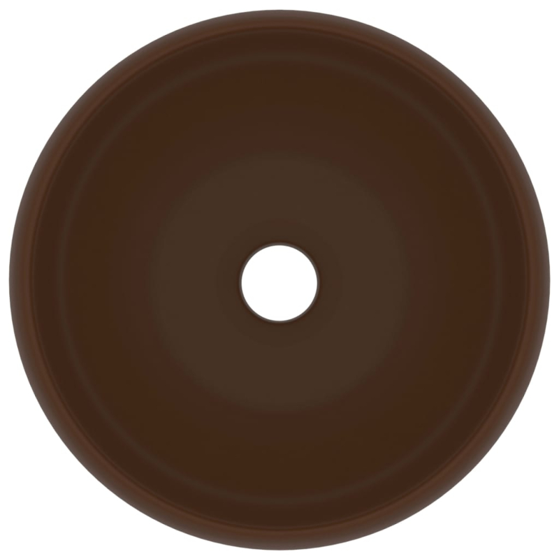 Dieses runde Waschbecken aus hochwertiger Keramik ist eine stilvolle und zeitlose Ergänzung zu jedem Badezimmer, jeden Waschraum, jede Garderobe oder jede Gästetoilette. Die matte Oberfläche und das luxuriöse Design sorgen für einen modernen und eleganten Look. Dieses Waschbecken ist mehr als nur ein praktisches Becken für den täglichen Gebrauch. Es ist ein Schmuckstück in Ihrem Wohnraum. Dieses Waschbecken kann auf die Badezimmerkonsole gestellt und auch im Kosmetikraum, in der Garage, in der Küche oder am Arbeitsplatz verwendet werden. Dank seines zukunftsweisenden und zeitgemäßen Designs passt dieses Waschbecken definitiv zu jedem Dekor und ist leicht zu reinigen. Das Abflussloch hat einen Durchmesser von 4,5 cm. Bitte beachten Sie: Abflussrohre sind nicht im Lieferumfang enthalten.