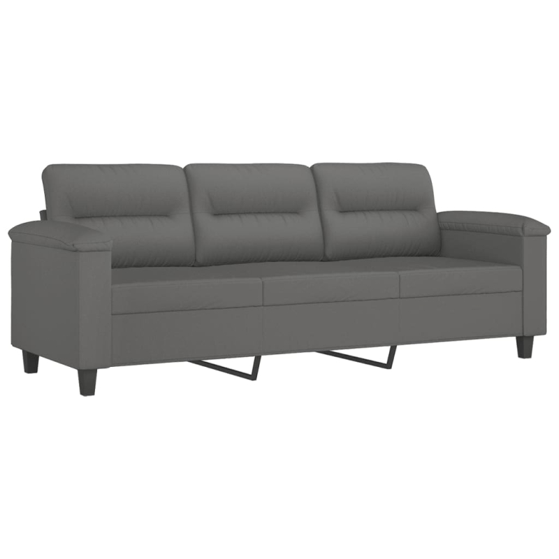 3-tlg. Sofagarnitur mit Kissen Dunkelgrau Mikrofasergewebe