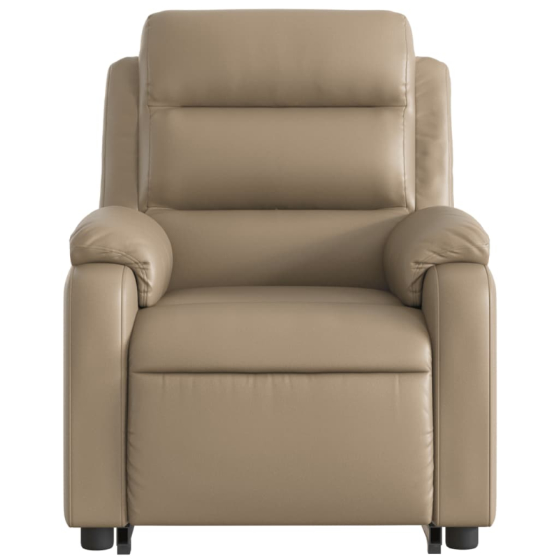 Lehne dich zurück und entspanne dich in diesem äußerst bequemen Relaxsessel mit Aufstehhilfe! Elektrische Aufstehhilfe: Dieser Relaxsessel ist mit einem Elektromotor zum Anheben ausgestattet. Dank der Aufstehhilfe, die den gesamten Sessel nach oben bringt, kannst du ganz einfach auf Knopfdruck aufstehen, ohne deinen Rücken und deine Knie zu belasten.Manuelle Liegefunktion: Dieser Ruhesessel lässt sich mittels des Griffs an der rechten Seite verstellen. So kannst du das Fußteil und die Rückenlehne manuell in jede beliebige Position bringen, um höchsten Komfort zu genießen. Die Rückenlehne lässt sich max. 135 Grad nach hinten verstellen. Durch einfaches Ziehen lässt sie sich schnell wieder in die ursprüngliche Position bringen.Bequemes Sitzerlebnis: Der dick gepolsterte Sitz, die Rückenlehne und die breiten, mit Kunstleder bezogenen Armlehnen sorgen für ein behagliches und angenehmes Sitzgefühl. Künstliches Leder ist ein äußerst langlebiges Material. Es ist schmutzabweisend und lässt sich mit einem feuchten Tuch einfach reinigen. Durch die glatte Oberfläche weist es die luxuriöse Schönheit von Echtleder auf.Praktische Seitentasche: Dieser Sessel verfügt über eine Seitentasche, in der du wichtige Sachen griffbereit aufbewahren kannst.Solider und stabiler Rahmen: Der Rahmen aus Holz und Metall sorgt für eine solide Struktur und hohe Stabilität. Dieser TV-Sessel ist bequem und langlebig.
