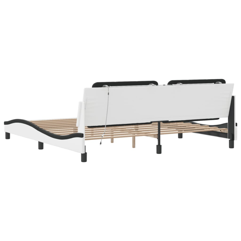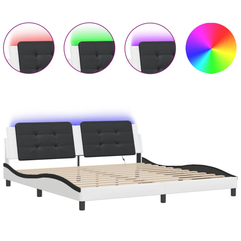Dieses Bettgestell mit LED-Leuchten sorgt für eine erholsame Nachtruhe! Es stellt eine einladende Ergänzung zu jedem Schlafzimmer dar. Langlebiges Kunstleder: Hochwertiges Kunstleder ist ein äußerst langlebiges Material. Es ist schmutzabweisend und lässt sich mit einem feuchten Tuch einfach reinigen. Durch die glatte Oberfläche weist es die Schönheit von Echtleder und einen luxuriösen Look auf.Sperrholzlatten: Die Sperrholzlatten sorgen für eine gute Gewichtsverteilung und auch dafür, dass die Matratze bei jeder Bewegung deines Körpers während des Schlafes an Ort und Stelle bleibt.Hervorragende Unterstützung: Das Bett-Kopfteil bietet dir eine hervorragende Unterstützung, während du im Bett sitzt, um zu lesen oder fernzusehen.Bunter LED-Streifen: Die farbenfrohen LED-Leuchten bringen das Schlafzimmer zum Leuchten! Die Klettverschlüsse auf der Rückseite des Kopfteils können zur Befestigung der LED-Leuchten verwendet werden.Wellenförmiges Seitendesign: Das stilvolle und raffinierte Design in Wellenform verleiht deiner Einrichtung eine moderne und elegante Note und macht das Bettgestell zum Mittelpunkt deines Schlafzimmers. Gut zu wissen:Bei diesem Bett ist keine Matratze im Lieferumfang enthalten. Wir bieten jedoch eine große Auswahl an Matratzen an. Du kannst in unserem Shop nach einer passenden Matratze suchen.Das Produkt verfügt über einen USB-Anschluss, für den eine zertifizierte 5V-USB-Stromquelle erforderlich ist (nicht im Lieferumfang enthalten).