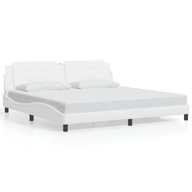 Dieses Bettgestell mit LED-Leuchten sorgt für eine erholsame Nachtruhe! Es stellt eine einladende Ergänzung zu jedem Schlafzimmer dar. Langlebiges Kunstleder: Hochwertiges Kunstleder ist ein äußerst langlebiges Material. Es ist schmutzabweisend und lässt sich mit einem feuchten Tuch einfach reinigen. Durch die glatte Oberfläche weist es die Schönheit von Echtleder und einen luxuriösen Look auf.Sperrholzlatten: Die Sperrholzlatten sorgen für eine gute Gewichtsverteilung und auch dafür, dass die Matratze bei jeder Bewegung deines Körpers während des Schlafes an Ort und Stelle bleibt.Hervorragende Unterstützung: Das Bett-Kopfteil bietet dir eine hervorragende Unterstützung, während du im Bett sitzt, um zu lesen oder fernzusehen.Bunter LED-Streifen: Die farbenfrohen LED-Leuchten bringen das Schlafzimmer zum Leuchten! Die Klettverschlüsse auf der Rückseite des Kopfteils können zur Befestigung der LED-Leuchten verwendet werden.Wellenförmiges Seitendesign: Das stilvolle und raffinierte Design in Wellenform verleiht deiner Einrichtung eine moderne und elegante Note und macht das Bettgestell zum Mittelpunkt deines Schlafzimmers. Gut zu wissen:Bei diesem Bett ist keine Matratze im Lieferumfang enthalten. Wir bieten jedoch eine große Auswahl an Matratzen an. Du kannst in unserem Shop nach einer passenden Matratze suchen.Das Produkt verfügt über einen USB-Anschluss, für den eine zertifizierte 5V-USB-Stromquelle erforderlich ist (nicht im Lieferumfang enthalten).