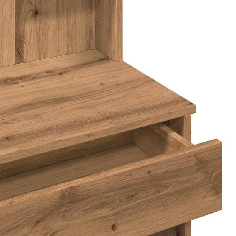 Mit seinem zeitlosen und eleganten Design ist dieser Schminktisch mit Spiegel eine großartige Ergänzung zu deiner Schlafzimmereinrichtung und bietet auch Platz zur griffbereiten Aufbewahrung deiner Kosmetika! Langlebiges Material: Holzwerkstoff ist ein Material hoher Qualität mit glatter Oberfläche, das sich durch Festigkeit, Stabilität und Feuchtigkeitsbeständigkeit auszeichnet. Aus Holzwerkstoff gefertigt, lässt sich dieser Schminktisch einfach reinigen.Reichlich Stauraum: Dieser Frisiertisch verfügt über 2 Schubladen und 4 kleine Ablageflächen, die reichlich Platz bieten, um deine Kosmetika ordentlich aufzubewahren.Allzweckspiegel: Der mitgelieferte schöne Spiegel bietet eine klare Sicht beim Auftragen von Make-up und verleiht dem Schminktisch eine elegante Note. Achtung:Um das Umkippen zu verhindern, muss dieses Produkt mit der mitgelieferten Wandhalterung gesichert werden.