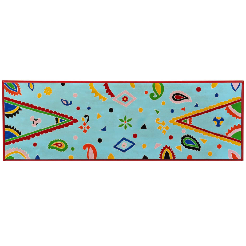 Dieser einzigartige Konsolentisch aus Holz verleiht deinem Wohn- oder Schlafzimmer eine farbenfrohe Note und ist überall ein echter Hingucker. Mit seinem markanten Design zieht dieser handbemalte Konsolentisch die Aufmerksamkeit deiner Gäste sofort auf sich. Dieser handgefertigte Tisch aus Mangoholz ist sowohl robust als auch schön anzusehen, die hochwertige Verarbeitung trägt zu seinem Vintage-Look bei. Der Tisch verfügt über reichhaltige, handbemalte dekorative Details - das macht ihn zum perfekten Möbelstück für Trendbewusste und Individualisten! Die markanten Griffe erleichtern das Öffnen der Schubladen und unterstreichen den einzigartigen Look dieses Konsolentisches. Der Konsolentisch verfügt über 4 Schubladen und bietet dadurch reichlich Platz, um verschiedene Sachen ordentlich aufzubewahren. Die farbenfrohe Tischplatte eignet sich ideal, um Dekoartikel wie Vasen, Bilderrahmen, Obstkörbe usw. zur Schau zu stellen. Der Zusammenbau ist kinderleicht.