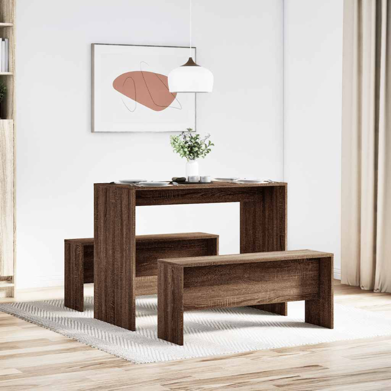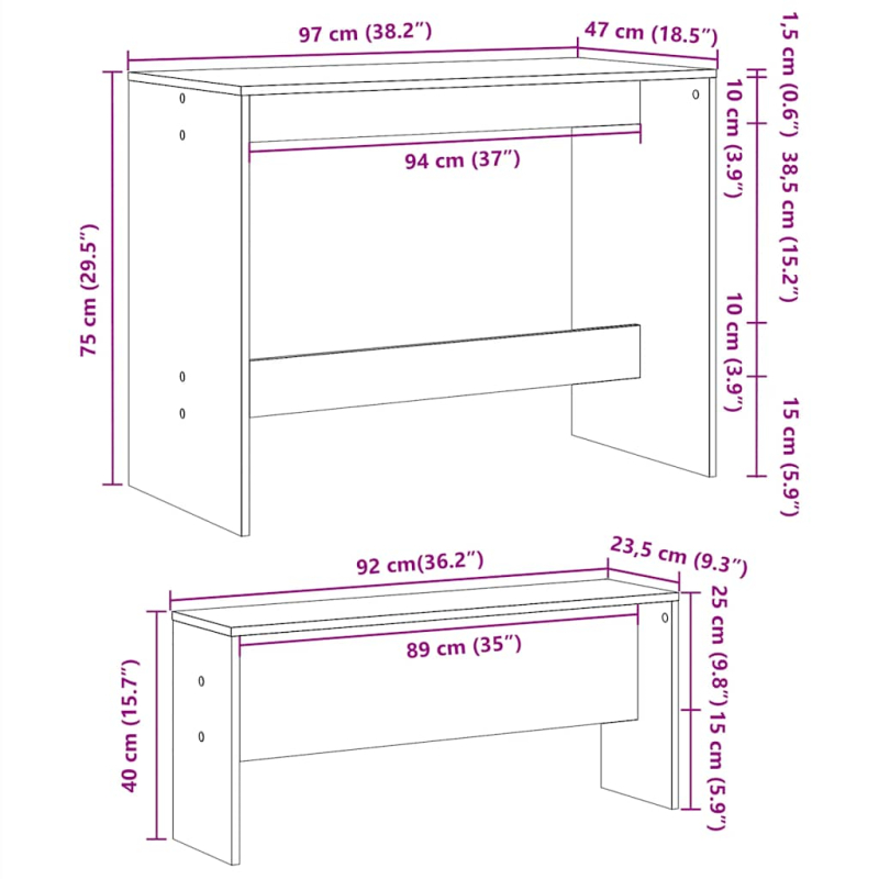 Schaffe mit dieser Essgruppe mit Bank einen gemütlichen und einladenden Ort, um den Tag zu beginnen oder mit der Familie eine großartige Mahlzeit zu genießen. Starkes und langlebiges Material: Holzwerkstoff ist ein langlebiges und robustes Material mit einer glatten Oberfläche, das gegen Feuchtigkeit, Verformung und Rissbildung beständig ist, wodurch es eine zuverlässigen Wahl für die Herstellung von Möbeln ist.Stabile Tischplatte: Dieser Esstisch verfügt über eine robuste Tischplatte, wodurch er sich ideal zum Servieren von Mahlzeiten, Snacks, Getränken und zur Präsentation deiner Lieblingsdekorationen eignet.Großzügige Sitzgelegenheiten: Dank der großzügigen Essbänke ist diese Essgruppe perfekt, um mit Familie und Freunden ein herrliches Festmahl zu genießen.Pflegeleicht: Dank ihrer glatten Oberfläche lässt sich die Essgruppe mit einem feuchten Tuch leicht reinigen und erfordert wenig Pflege.