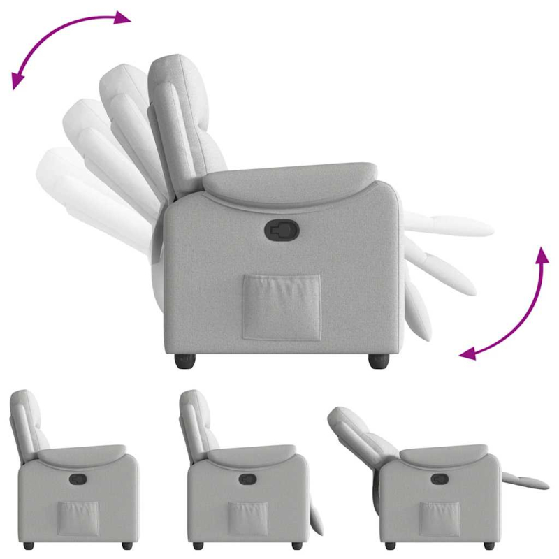 Lehne sich zurück und entspanne sich in diesem äußerst bequemen Relaxsessel! Manuelle Liegefunktion: Dieser Ruhesessel lässt sich mittels des Griffs an der rechten Seite verstellen. So kannst du das Fußteil und die Rückenlehne manuell in jede beliebige Position bringen, um höchsten Komfort zu genießen. Die Rückenlehne lässt sich max. 135 Grad nach hinten verstellen. Durch einfaches Ziehen lässt sie sich schnell wieder in die ursprüngliche Position bringen.Bequemes Sitzerlebnis: Die dick gepolsterte Sitzfläche, die Rückenlehne und die breiten Armlehnen sorgen für ein behagliches und wohliges Sitzgefühl. Der Bezug aus Stoff weist eine schlichte und saubere Optik auf und ist auch atmungsaktiv und langlebig.Praktische Seitentasche: Dieser Sessel verfügt über eine Seitentasche, in der du wichtige Sachen griffbereit aufbewahren kannst.Solider und stabiler Rahmen: Der Rahmen aus Holz und Metall sorgt für eine solide Struktur und hohe Stabilität. Dieser TV-Sessel ist bequem und langlebig.