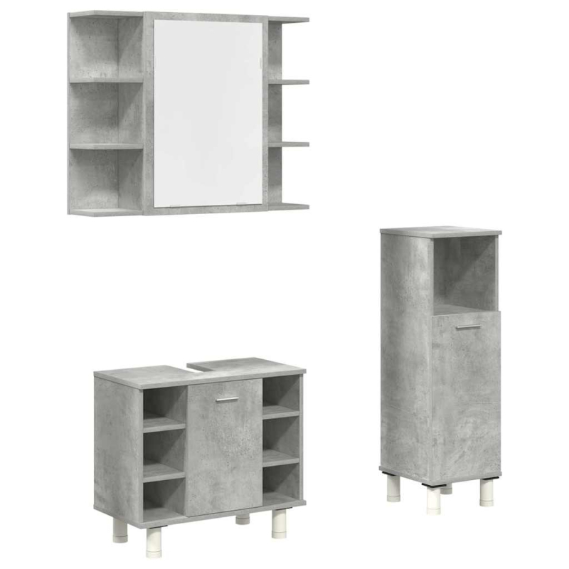 3-tlg. Badmöbel-Set Betongrau Holzwerkstoff