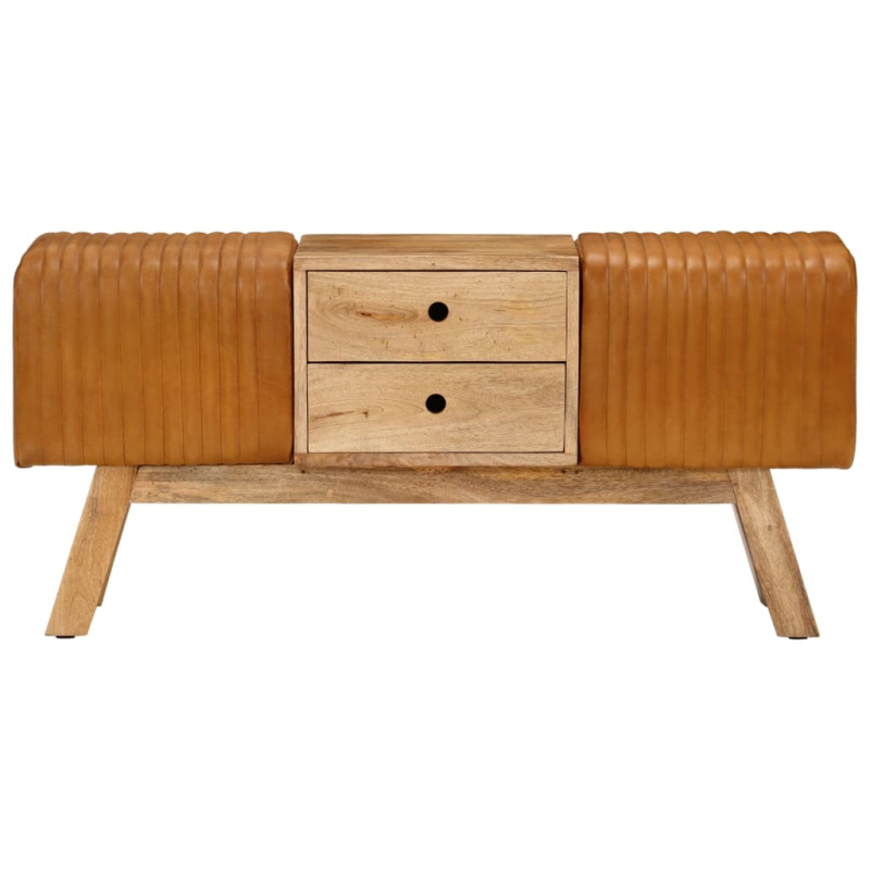 Mit dieser tollen Bock-Sitzbank aus Echtleder schaffst du ein Vintage-Ambiente in deinem Wohnraum. Stabil: Die Flurbank wird von Beinen aus massivem Mangoholz getragen, was sie stabil und robust macht.Komfortable Sitzgelegenheit: Mit Canvas und strapazierfähigem Echtleder bezogen, bietet diese Sitzbank ein ausgezeichnetes Sitzerlebnis. Darüber hinaus sorgt die dicke Polsterung für zusätzlichen Komfort.Zusätzlicher Stauraum: Die zwei Schubladen in der Mitte bieten reichlich Stauraum. Hinweis:Die Farben können von Artikel zu Artikel variieren, wodurch jedes Möbelstück einzigartig ist. Die Lieferung erfolgt nach dem Zufallsprinzip, wodurch die Exklusivität und Individualität deines Produkts gewährleistet wird.Jedes Produkt wird mit einer Montageanleitung in der Verpackung für eine einfache Montage geliefert.