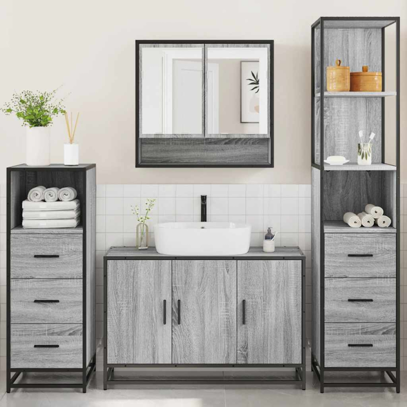 4-tlg. Badmöbel-Set Grau Sonoma Holzwerkstoff