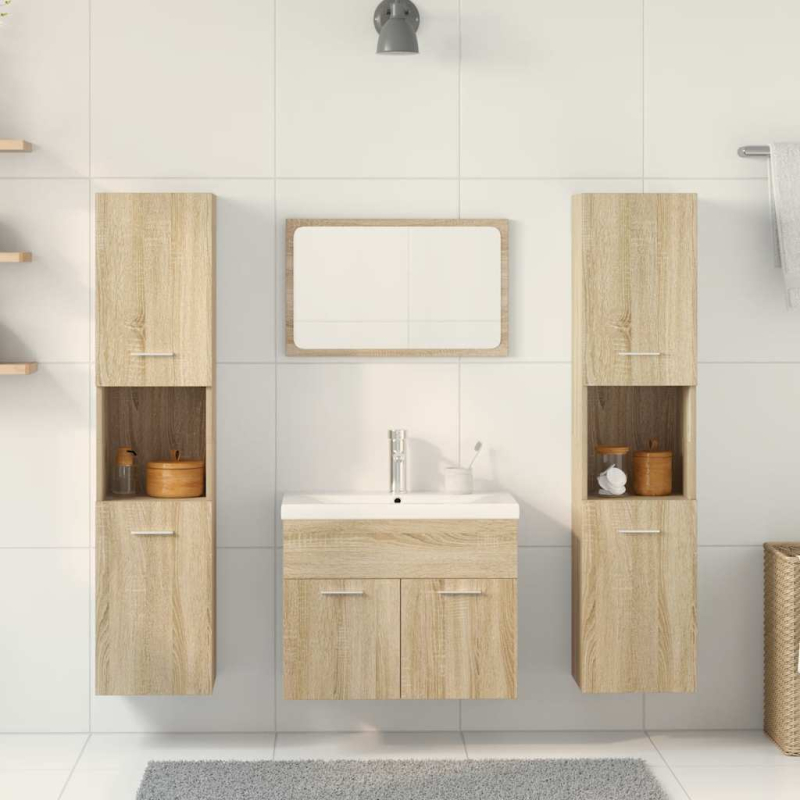 Dieses praktische Badmöbel-Set mit geräumigem Stauraum ist eine hervorragende Ergänzung für dein Badezimmer und verleiht ihm ein aufgeräumtes und eindrucksvolles Aussehen! Langlebiges Material: Holzwerkstoff ist ein Material außergewöhnlicher Qualität mit glatter Oberfläche. Er zeichnet sich durch Festigkeit, Stabilität und Feuchtigkeitsbeständigkeit aus.Langlebiges Material: Das aus Keramik gefertigte Waschbecken besitzt eine robuste Oberfläche, die Stößen, Flecken und Kratzern widersteht und einen lang anhaltenden Glanz aufweist.Reichlich Stauraum: Der Badezimmerschrank bietet reichlich Stauraum, um wichtigste Toilettenartikel und Badutensilien wie Seife, Shampoo, Zahnpasta usw. zu verstauen.Wandmontage: Der Badezimmerschrank lässt sich an der Wand montieren, um zusätzlichen Stauraum zu schaffen. Auf diese Weise kannst du deine Bodenfläche maximieren und leichter für Ordnung sorgen.Klares Spiegelbild: Die Spiegelfläche aus Glas bietet eine feine und unverzerrte Spiegelung, sodass sie sich zum Schminken, Rasieren oder Gesichtspflege eignet. Gut zu wissen:Schrauben und Dübel sind für die Befestigung an der Wand nicht im Lieferumfang enthalten. Wir empfehlen dir, speziell für deine Wände geeignete Schrauben und Dübel zu finden und zu verwenden. Im Zweifelsfall wende dich an einen Fachmann. Bitte lese und befolge jeden Schritt der Anweisungen.